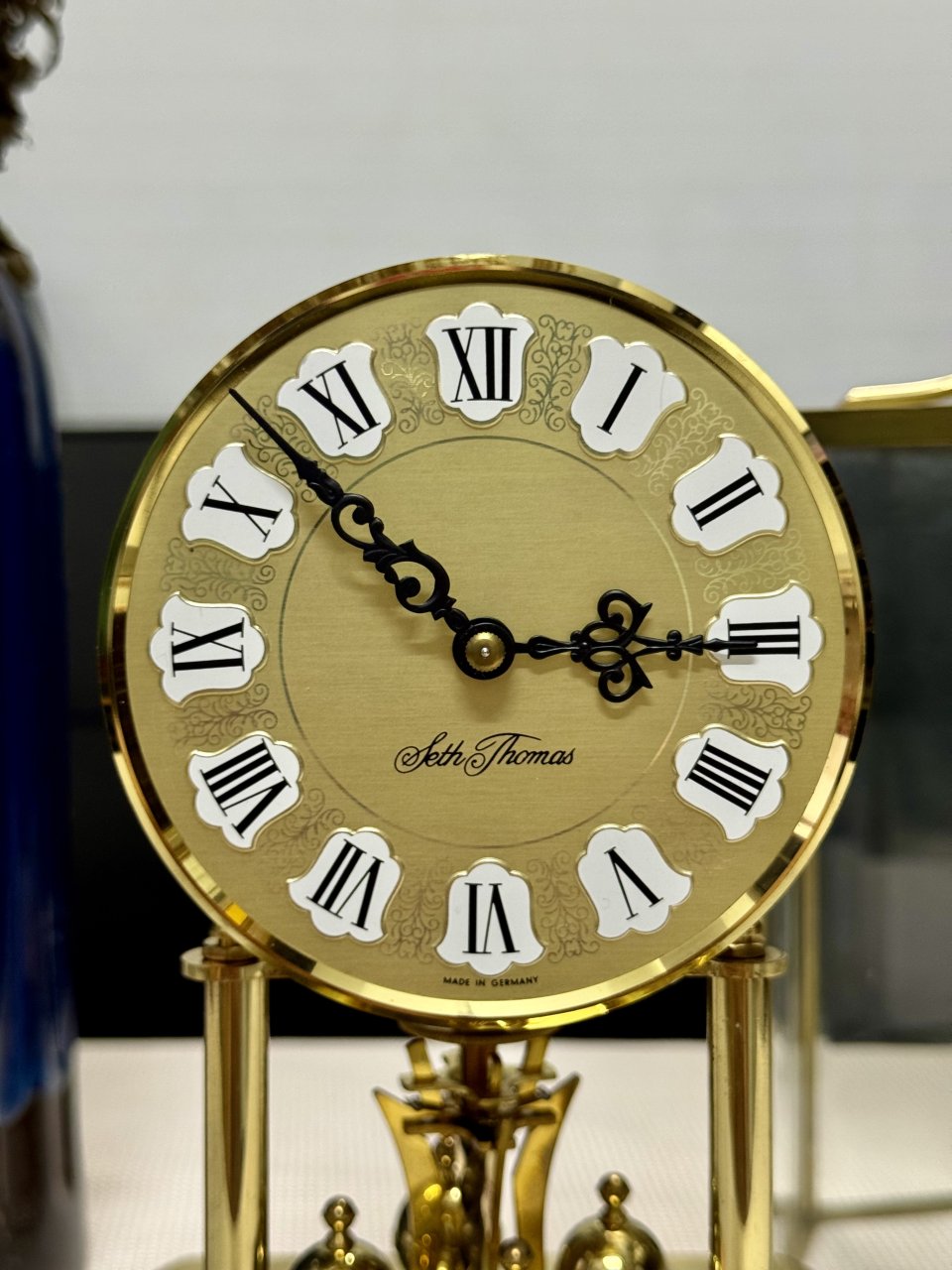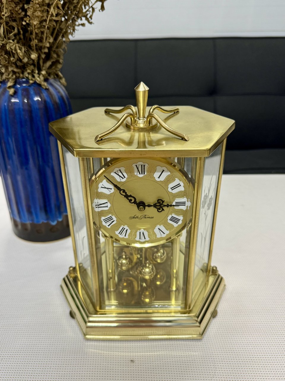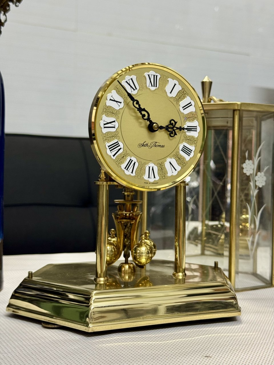 🌟 🌟 Tổng thể đẹp sáng kính zin nguyên vẹn . Mặt số hoàn hảo , chất đồng ánh kim đẹp có chi tiết mạ vàng . Máy óng ánh . Đủ phụ kiện zin là những phần nổi bật tạo nên sự sang trọng khi trưng bầy trong không gian trang trọng .