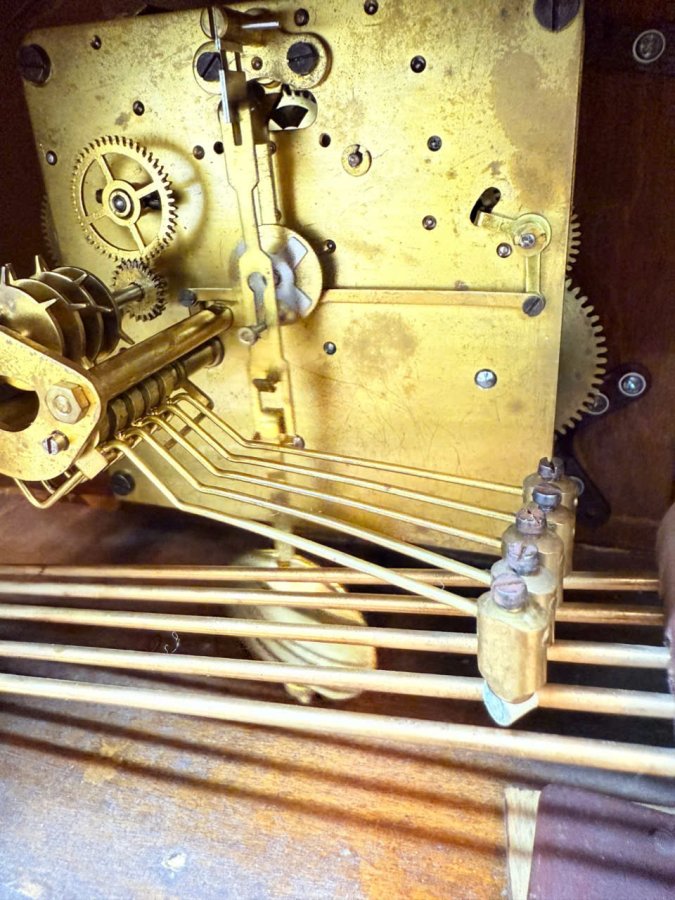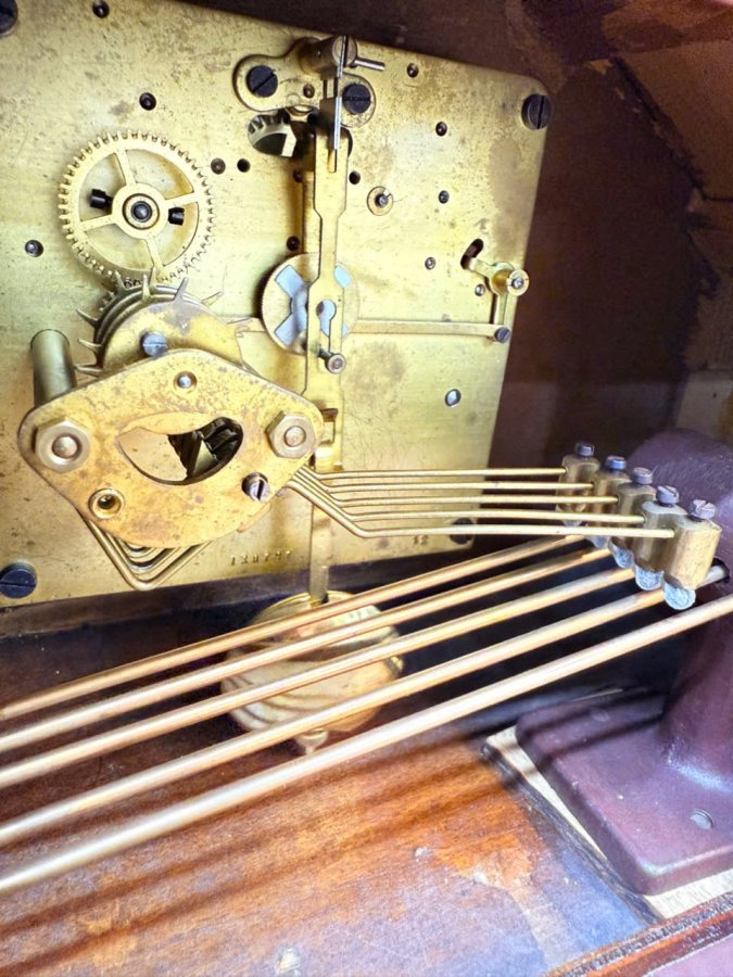 - Mặt số học trò sáng đẹp - Bộ máy 5 gong 5 búa , chơi nhạc Westminster, âm chuông hoài cổ rất hay - Có ngắt chuông ** Đồng hồ đã được lau dầu, cân chỉnh , vệ sinh sạch đẹp , các bác chỉ việc mua về dùng