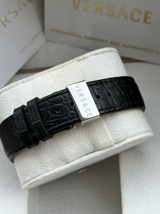 Chiếc Versace Automatic với mặt số hoạ tiết guilloché cực kỳ tinh tế, nổi bật logo Medusa quyền lực – biểu tượng của nhà mốt Versace. Thiết kế thanh lịch nhưng vẫn đầy nam tính, phù hợp cả công việc lẫn sự kiện sang trọng.