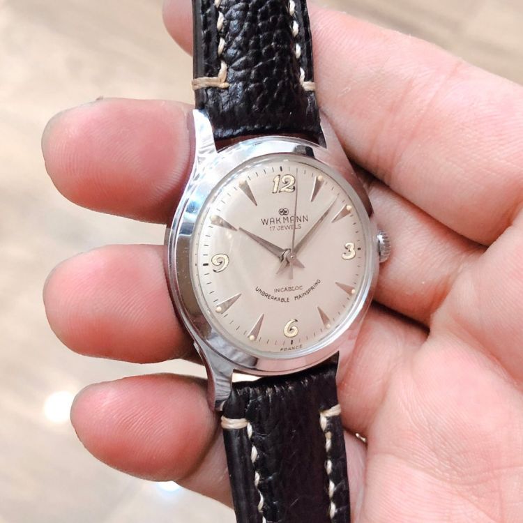 Thông tin kỹ thuật đồng hồ cổ:Đồng hồ WAKMANN Pháp sản xuất -Size 32 mm không tính núm-Mặt số Zin 3 kim 1 lịch kết hợp với cọc số nổi rất đẹp-Vỏ ss thép không rỉ đẹp-Đáy ss thép không rỉ đẹp-Núm zin đẹp-Kính zin còn trong suốt không ngã màu-Dây được thay thế : dây da-Máy WAKMANN lên dây chính hãng Pháp còn rất mới và chạy rất chuẩn-Giá : 1,300,000-Gọi ngay (090 1255100)Trần Quan TháiVì hình chụp bằng điện thoại nên hình ảnh bị hạn chế hết vẻ đẹpXin bấm và tấm hình phía trên góc bên trái để lựa chọn chiếc khác nếu thấy không vừa ý chiếc này hoặc vào (google :090 1255100 phomuaban) TrầnQuan Thái