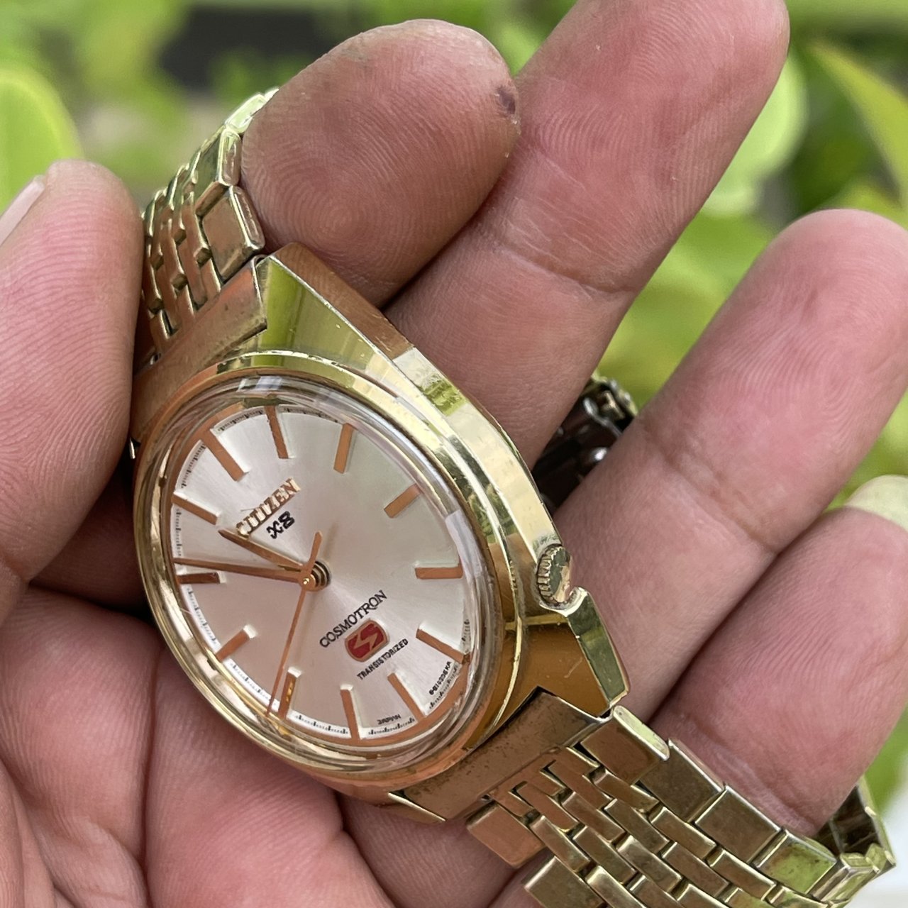 Đồng hồ xưa Hiệu Citizen chính hãng Nhật bản zin 100% - cơ chế pin bán cơ kim trôi hoạt động tốt - chất liệu toàn thân lắc kê vàng GP có đóng triện & kính mica - size 36mm núm ẩn rất hay - tình trạng đẹp - giá 1.368k ( KMC ). Kính mời