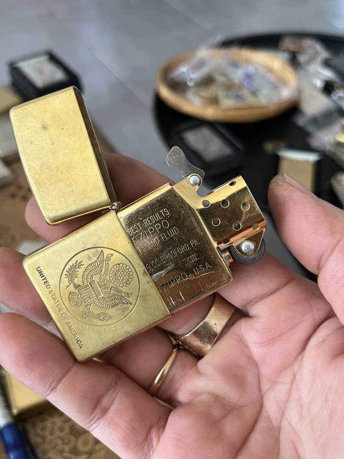 Zippo dong thau nguyen khối 13 lama vo ruột trùng. Chinh hãng usa nguyen zin