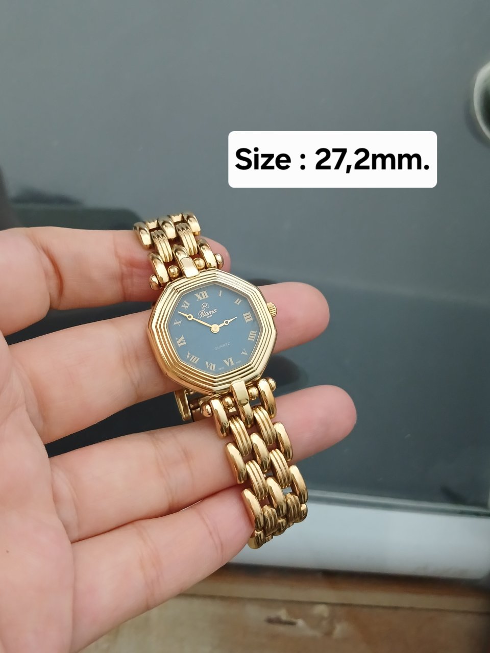 Đồng hồ nữ máy Thụy, hiệu Rama, mới trên 98%, vỏ bọc vàng 18k, độ dày 10mc, đeo ko khác gì vàng đúc, vĩnh viễn không phai. Kính mineral crystal, kính cứng chống va đập. Giá : 2tr8 ck hoặc cọc.