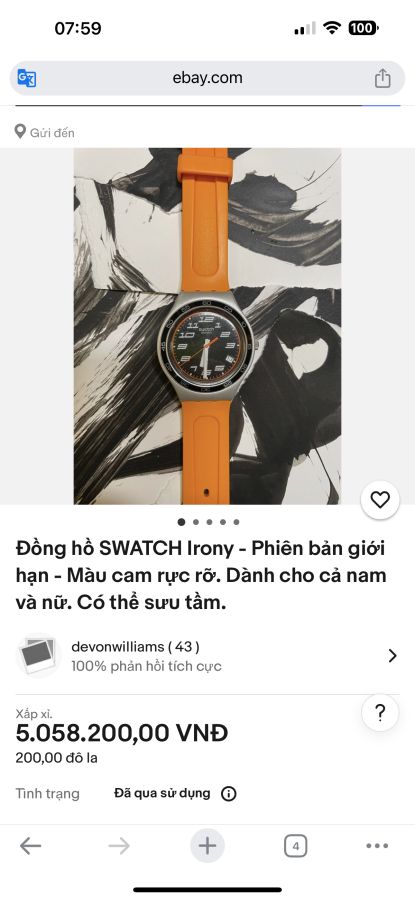 Đồng hồ swatch chunhs hãng thuỵ sỹ gl ace . Màu cam hermes bản này hiếm ạ . Ebay ván đag hoen 5tr