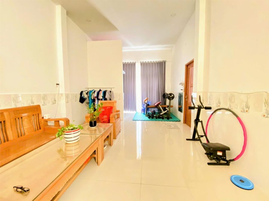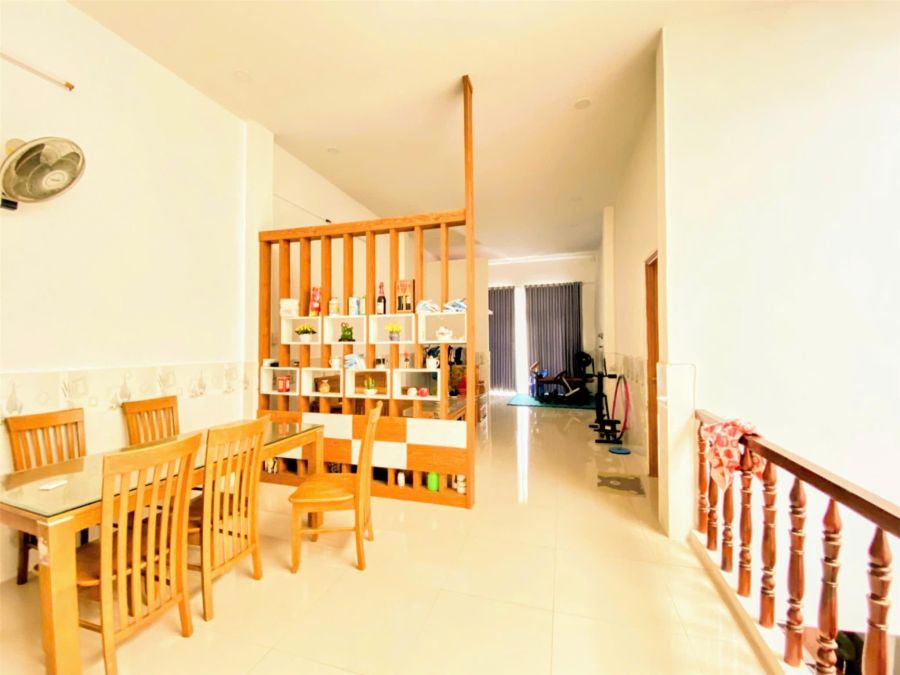 Nhà 2 tầng BTCT gồm 1 trệt 1 lầu, có 3PN, 2WC, phòng khách bự chảng để chục xe máy vô tư, xe hơi 2,3 chiếc ngủ trong nhà.
