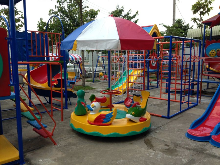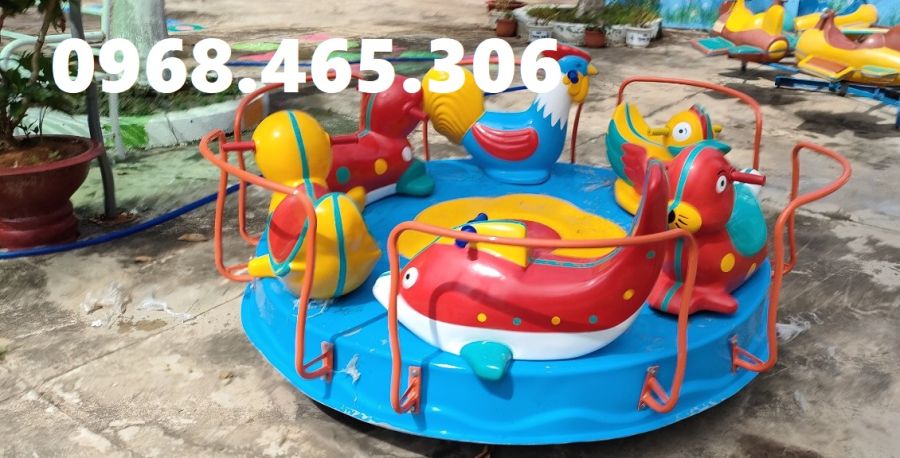 Mỗi con giống được bố trí đồ gác chân cho bé. Hệ thống khung sắt lục giác được xoay quanh trục giữa cố định. Có bạc đạn để đu quay được nhẹ nhàng êm khi di chuyển. Đế đu quay được thiết kế chừa lỗ để định vị tắc kê xuống nền bê tông.