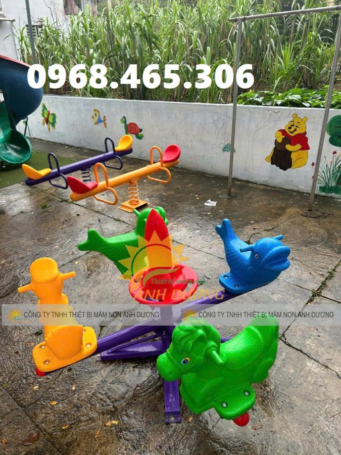 Đu quay con vật: Ghế ngồi được tạo hình thành các con vật ngộ nghĩnh như cá ngựa, voi, hươu cao cổ, thu hút sự chú ý của trẻ. Loại này thường được làm bằng composite hoặc nhựa HDPE, có màu sắc tươi sáng, bắt mắt.