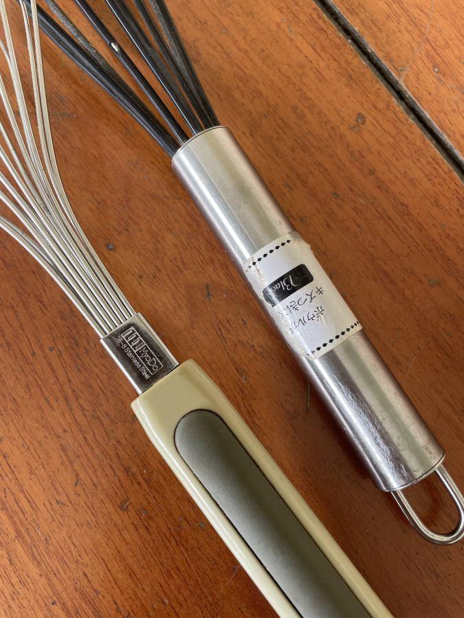 Bán cặp đánh trứng Japan còn rất đẹp. Cây lớn MyoDo bằng thép thực phẩm 18-8, cây ngắn bằng thép phủ nhựa