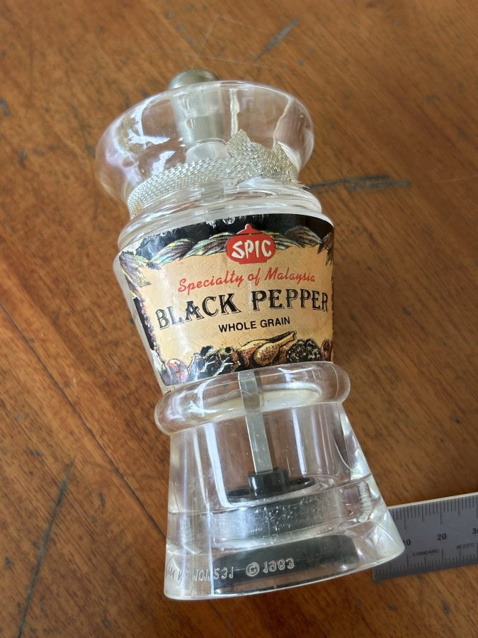 Bán 1 cối xay tiêu Malaysia chưa sử dụng. Dụng cụ được thiết kế rất đẹp (U.K. design) với núm khóa bằng bạc