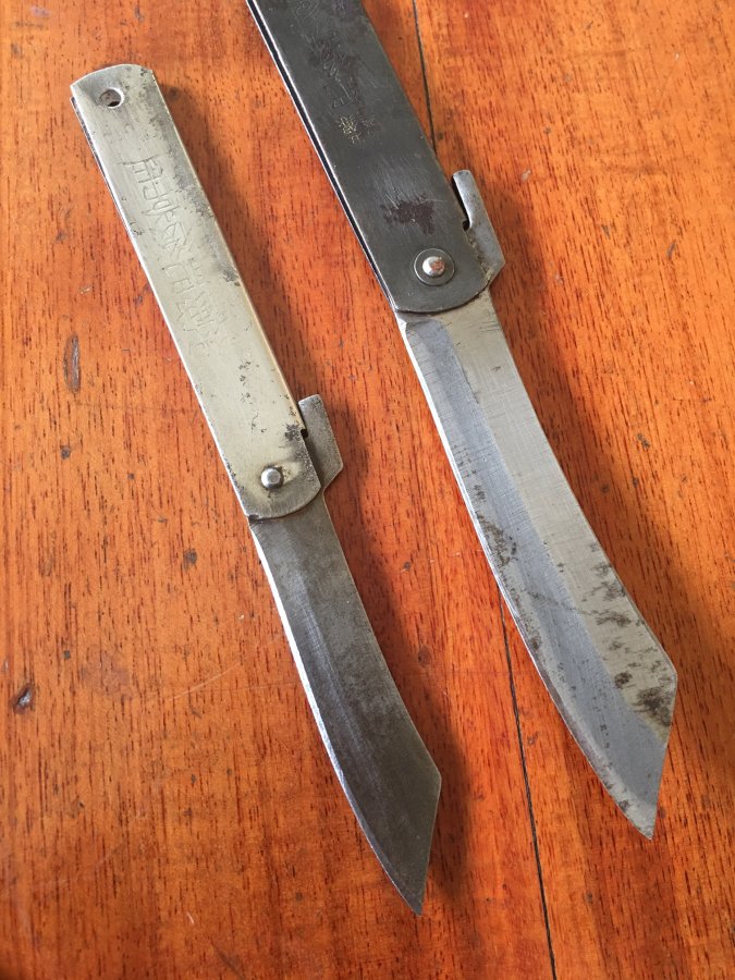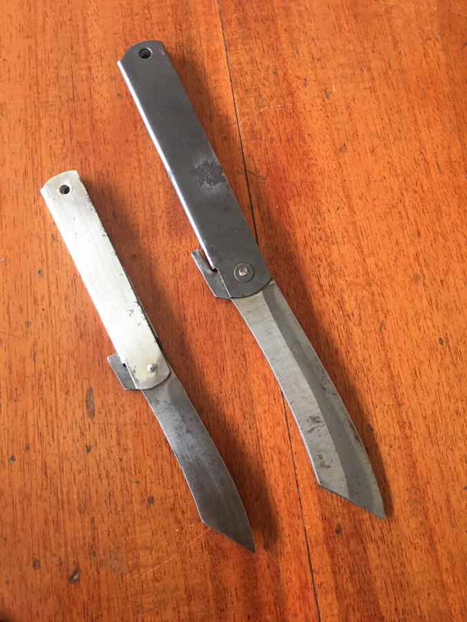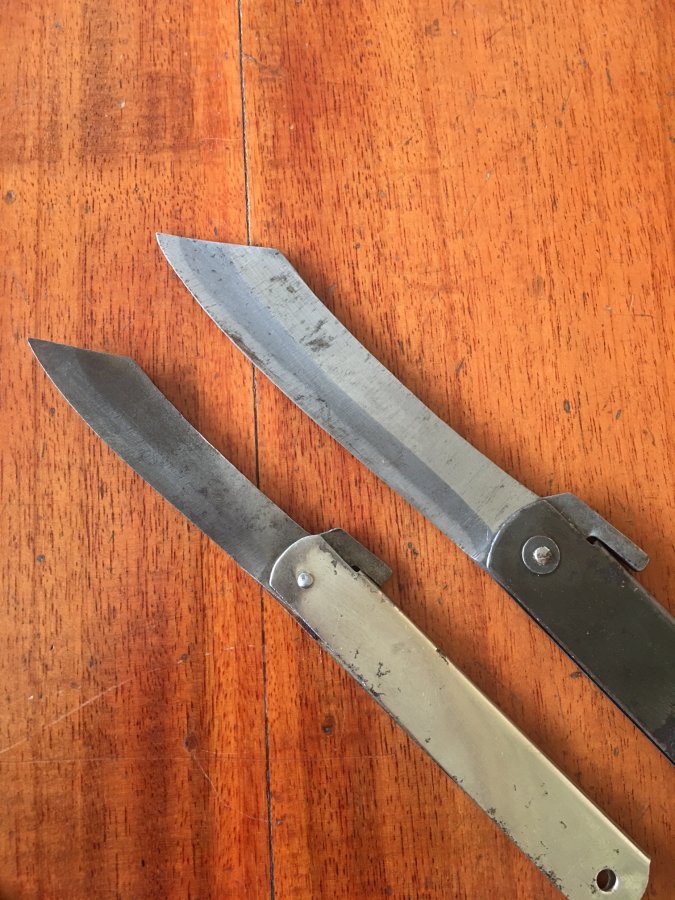 Bán cặp dao ghép bonsai, hàng thủ công, thép ghép chưa sử dụng. Cây lớn lưỡi dày 2ly, cây nhỏ 1,5ly rất bén