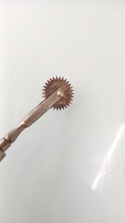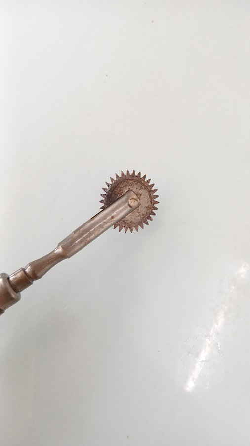 Cắt theo đường kẻ thước có thể cắt bột thực phẩm hoặc giấy cứng OK. Lưỡi thép còn bén cán gỗ đẹp.