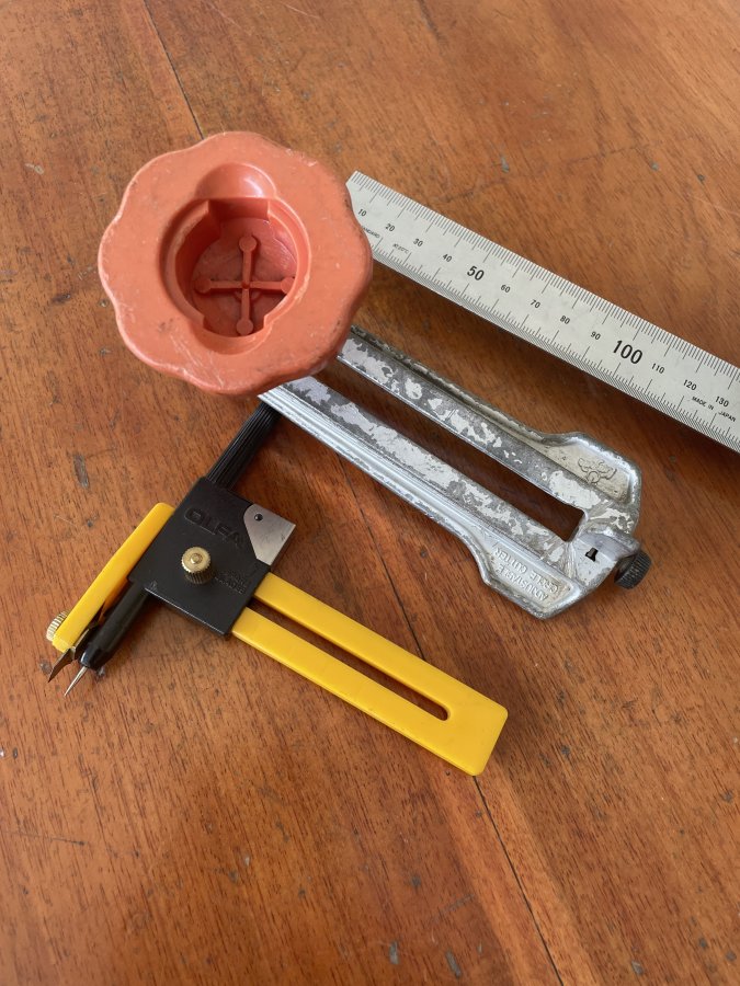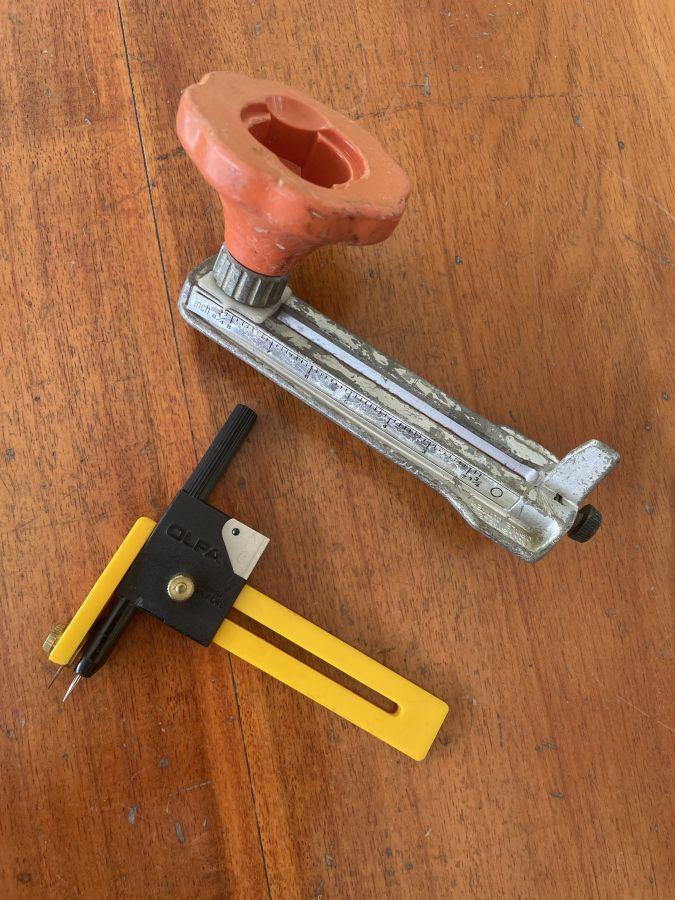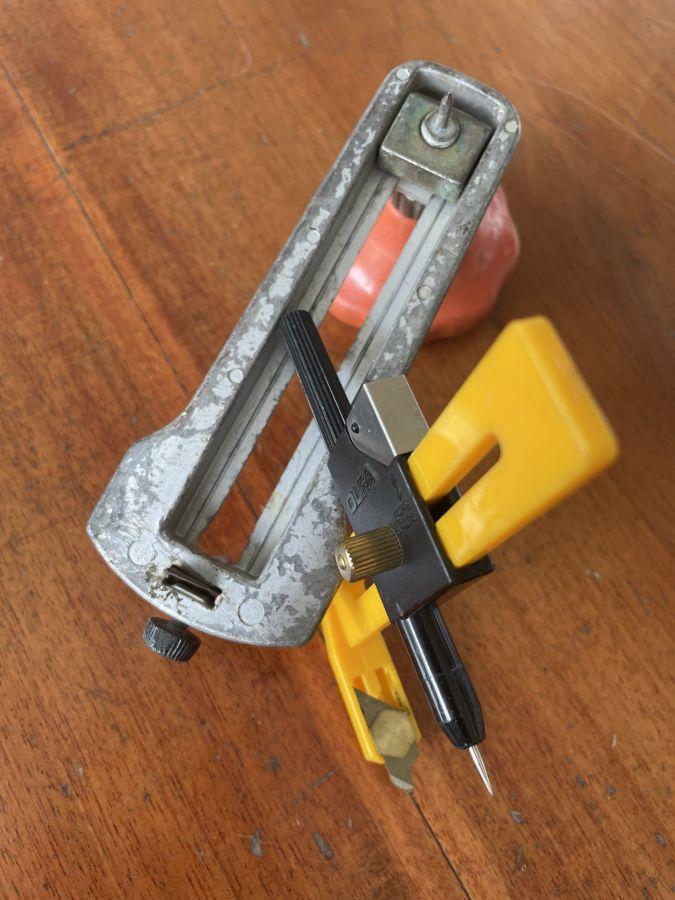 Bán bộ dụng cụ cắt tròn Japan còn khá đẹp, cây vàng Olfa chưa sử dụng có 6 zin đi kèm. Bộ dụng cụ thao tác được trên thạch cao, da, simili, mica...
