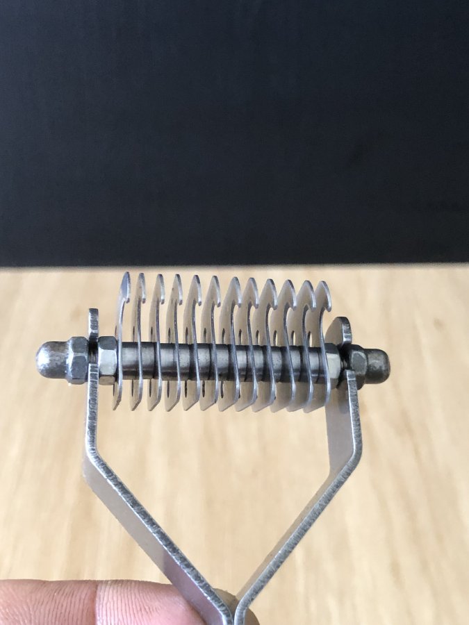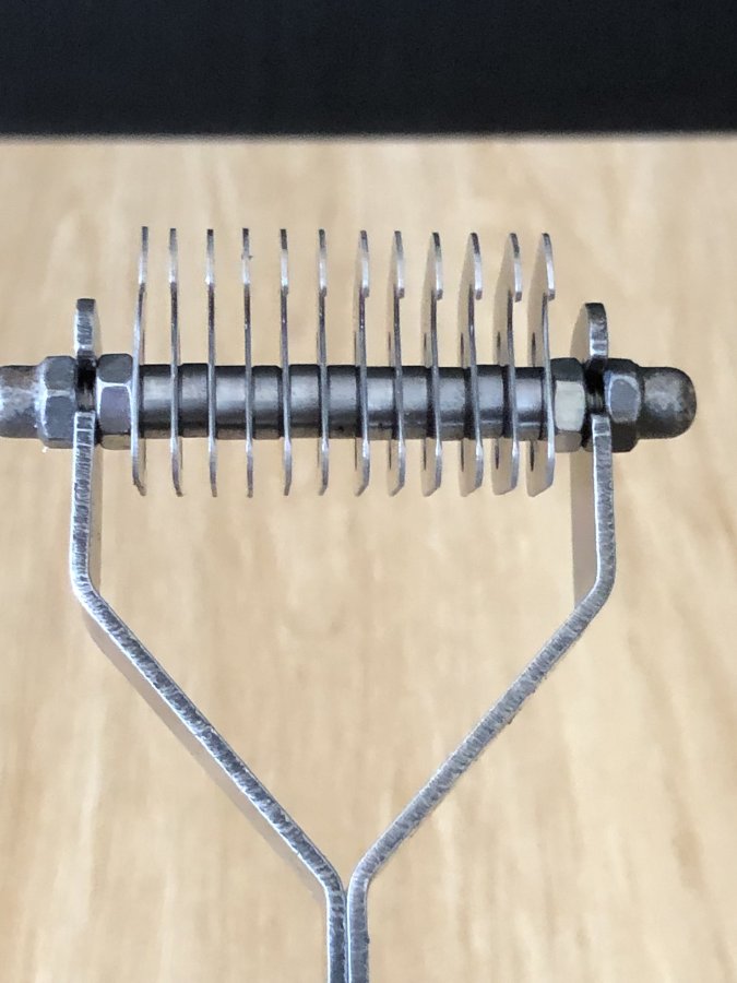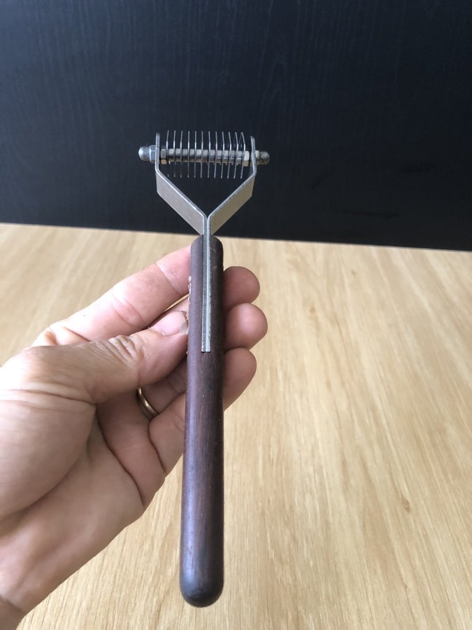 Dụng cụ chải bằng thép trắng,tay cầm cán gỗ tốt và 2 tán đồng độc đáo,sử dụng vừa chải lông vừa cắt những lông củ,già vón cục tạo cho bộ lông thú cưng mượt mà.Anh chị nhà có nuôi thú cưng có thể mua về sử dụng.Cảm ơn đã xem tin
