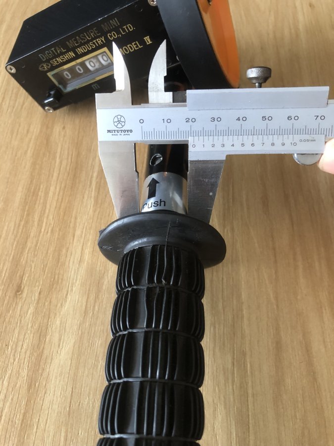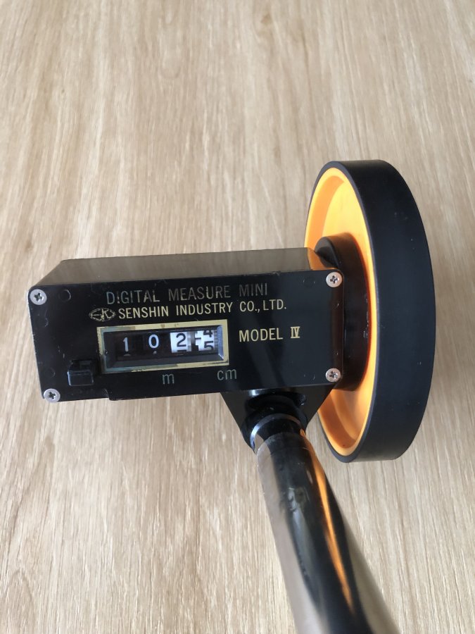Dụng cụ còn rất mới thân kim loại kéo ra thu vào không hít nam châm,bánh xe lăn chưa thấy dấu sử dụng.Loại dụng cụ đo khoảng cách bằng bánh xe lăn nhảy số cơ học,đo được khoảng cách lên đến 99,8m và đo rất chuẩn xác.Khi sử dụng kéo dài ra được 105cm và thu vào sếp gọn còn 29cm.Dụng cụ rất độc đáo cho anh chị mua sử dụng hay sưu tầm.Cảm ơn đã xem tin