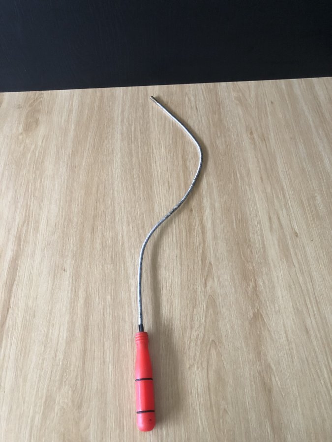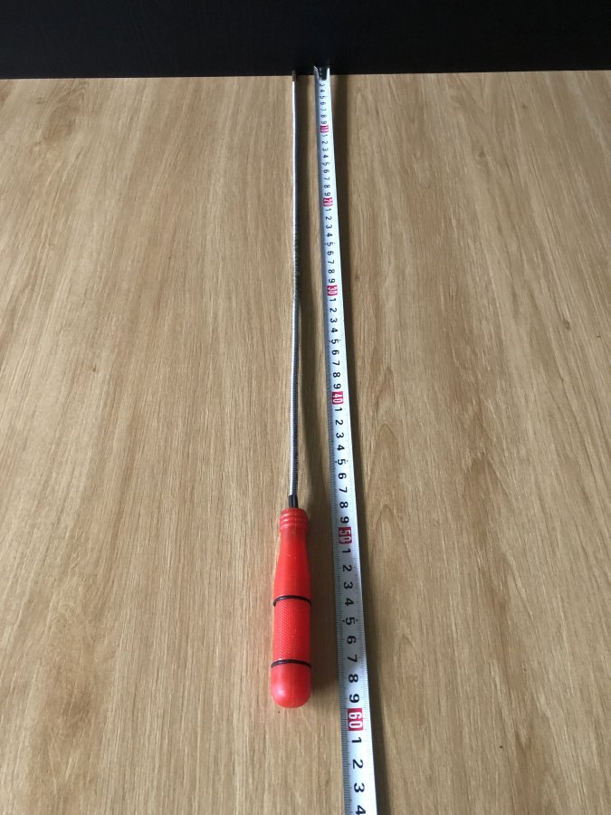 Dụng cụ đã qua sử dụng,dài 60cm,hiệu trên tay cầm mờ nên không gỏ hiệu gì.Thân dể dàng uốn cong để lấy những ốc vít rơi rớt những chỗ hẹp khó lấy rất hay.Cảm ơn đã xem tin