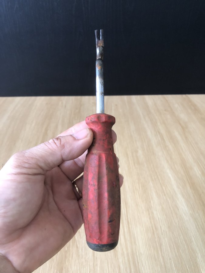 Dụng cụ là 1 cây vít dẹp đã qua bàn tay độ chế,uốn nắn công phu thành cây nạy của mấy anh kỷ sử Nhật.Hình ảnh trước và sau khi đã vệ sinh lại.Cảm ơn đã xem tin