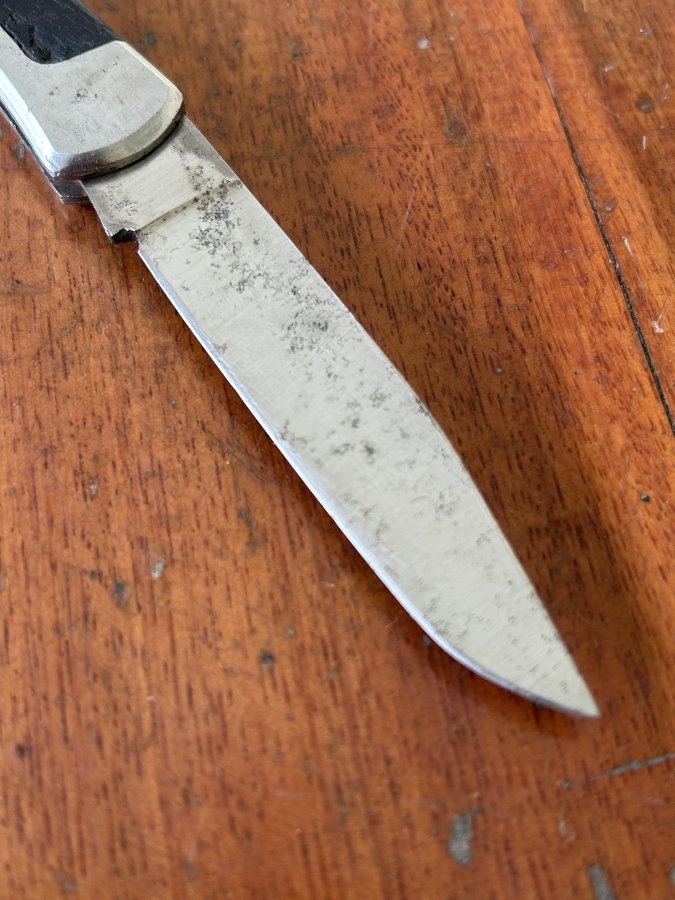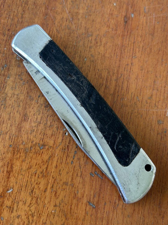 Bán 1 dụng cụ gọt hoa quả, cắm trại Nhật còn rất đẹp. Dụng cụ sâu tuổi, có thân và lưỡi bằng thép cứng không gỉ 440. Lưỡi dày 2.5ly nguyên zin chưa mài dũa, rất bén