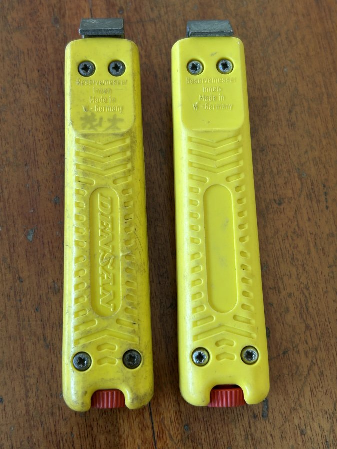 Bán cặp dụng cụ rọc cáp Germany, cây Lobster còn như mới, đủ 2 lưỡi. Cây Densan còn 1 lưỡi, 2 chân răng sau lung lay đã xử lý chắc chắn. Cả 2 hoạt động hoàn hảo