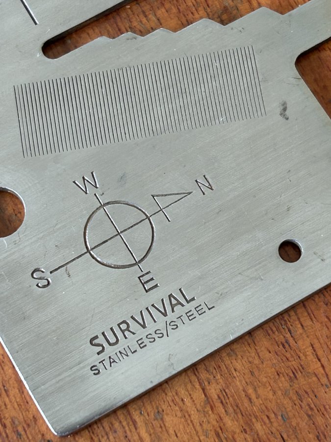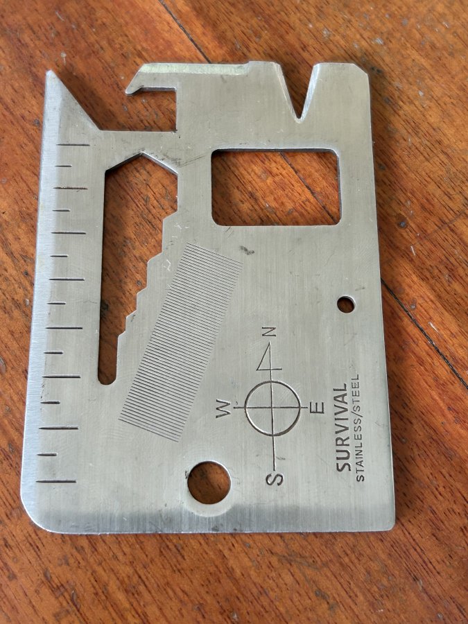 Bán 1 dụng cụ sinh tồn, cắm trại còn như mới. Dụng cụ đa năng thép không gỉ dày 2 ly được hoàn thiện mài bóng rất đẹp
