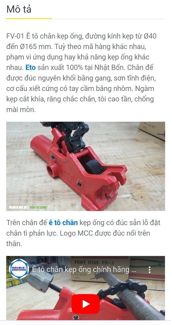 Ê tô xích kẹp ống nước MCC Japan ************ Nhật