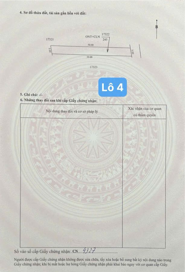 -Dt: 5x50m; Thổ cư 60m2 (Đã bán lop 2)