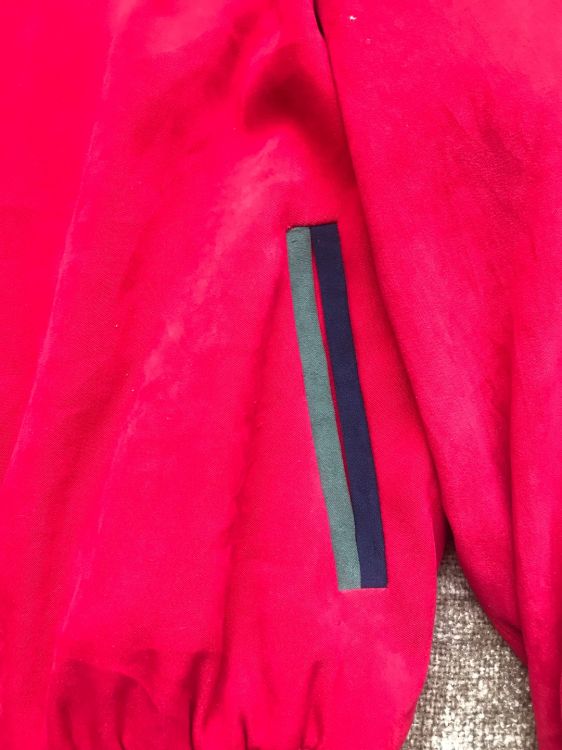 Áo cực đẹp và chất gl ace . Nhưng mà đỏ thẫm nên rất sang . Thêu chỉ kim tuyến. Logo và dây kéo si vàng rất đẹp