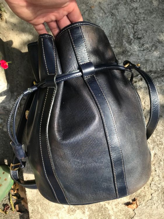 Da cuẹc chất . Mới tinh từ trong ra ngoài . Các chi tiết kim loại vàng choé . Dập tên tumhuowng hiệu tè le chỗ . Kèm theo ví nhỏ cho chị em đựng tiền lẻ . Bảo đảm ai mê dòng bucket hok thể bot qua e này . Quá đẹp và chất