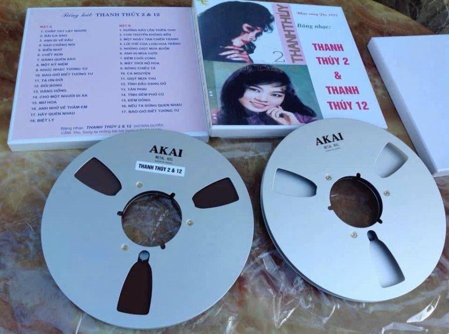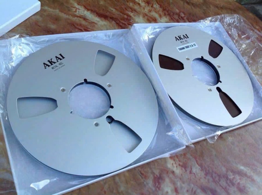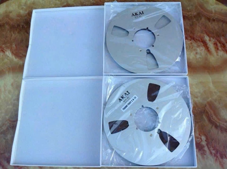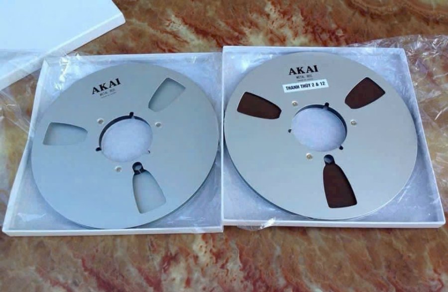 👉📽 bộ băng cối 10inh - 4 track sợi dây ruột băng maxell 180 phút madein Japan + 1 cặp 2 xương nhôm AKAI trắng mới 100% cực đẹp + với 2 chương trình (Thanh Thuý 2 và Thanh Thuý 12) chất âm chuẩn nét cực phê.👇