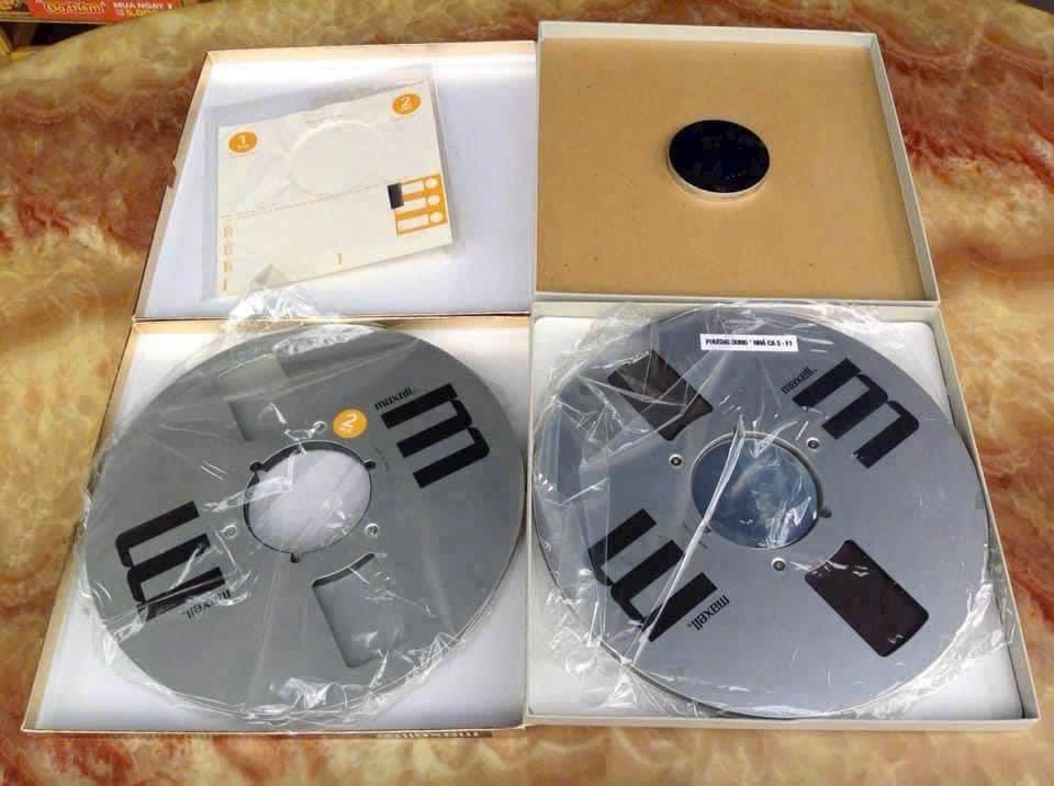 💎 Em giao lưu bán bộ cuộn băng cối 10inh - 4track - ruột băng maxell + một cặp 2 xương nhôm Maxell madein Japan màu trắng mới 98% 2 vỏ hộp gold vàng cực mới, đẹp với 2 chương trình (Phương Dung - Nhạn Trắng Gò Công và chương trình Nhã Ca 5 - băng vàng hay nhất trong năm 72) vừa hạ cánh ✈️ về 🇻🇳 📽chất âm băng cối cổ xưa F1 sang cực nét👍