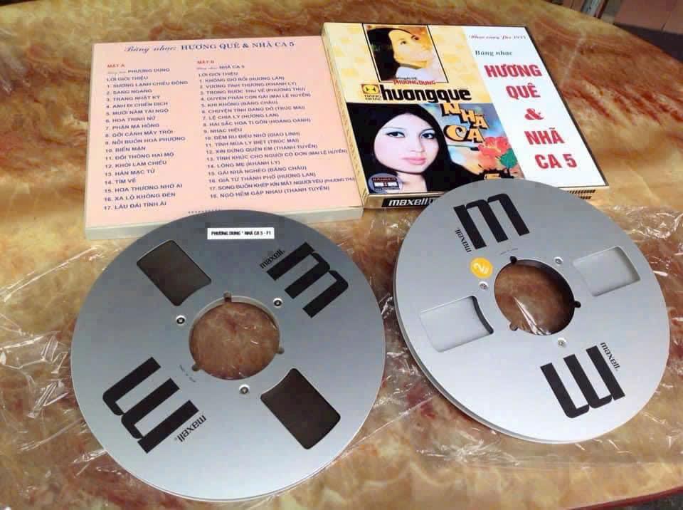 👉📽 băng 10inh - 4 track + một cặp 2 xương và ruột sợi băng Maxell 180 phút - tất cả nguyên Zin 100% madein JAPAN + với 2 chương trình huyền thoại (Phương Dung hương quê & băng nhạc Nhã Ca 5) với những tình khúc kinh điển, bất hủ hay vượt thời gian do các ca sĩ, nhạc sĩ,danh ca gạo cội thời Sài Gòn trước năm 75 thể hiện cực xuất sắc và thành công vào thập niên 70💞 băng mới 98% chất âm băng cối cổ xưa xưa F1 sang cực nét, cực hay.