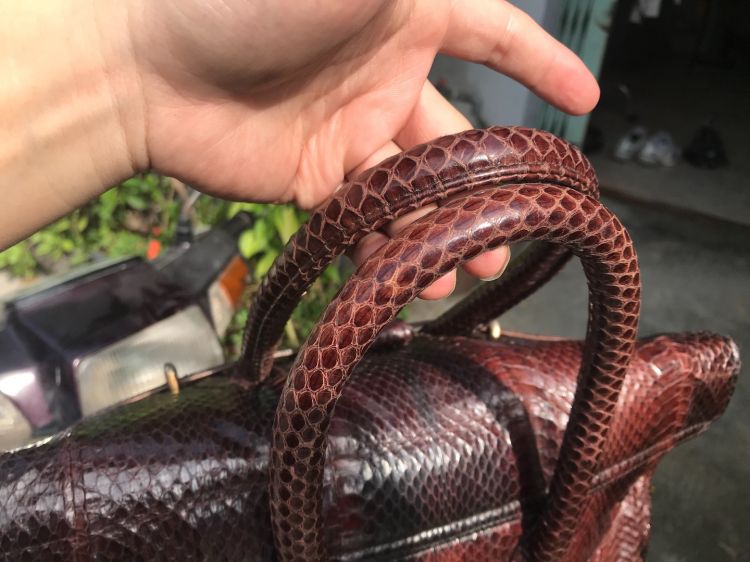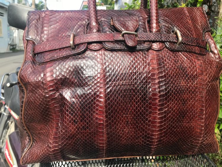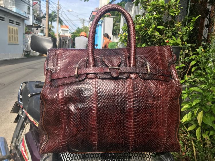 Gl cho chị một em túi kiểu HERMES cực đẹp và độc được làm từ da rắn size to nên rất hiếm nhé con này có tiền chưa chắc đã mua được . Rắn phải già và to thì mới có thể làm ra được chiếc túi khủng thế này . E này đi làm đi tiệc hay đi du lịch gì thì đều ok hết bảo đa ai cũng trầm trồ. Tuia còn cực đẹp ace nhìn tay xách sẽ biết ạ