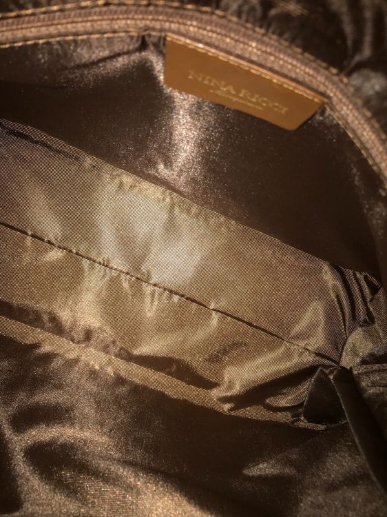 Em tuia nữ hàng hiệu NINA RICCI của pháp cực đẹp và chất . Túi mới đẹp từ trong ra ngoài . Da thật phối vải hãng mềm và mịn . Màu vàng champane cực sang trọng. Khuy khoá mạc vàng sáng bóng