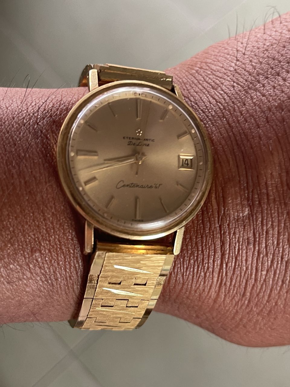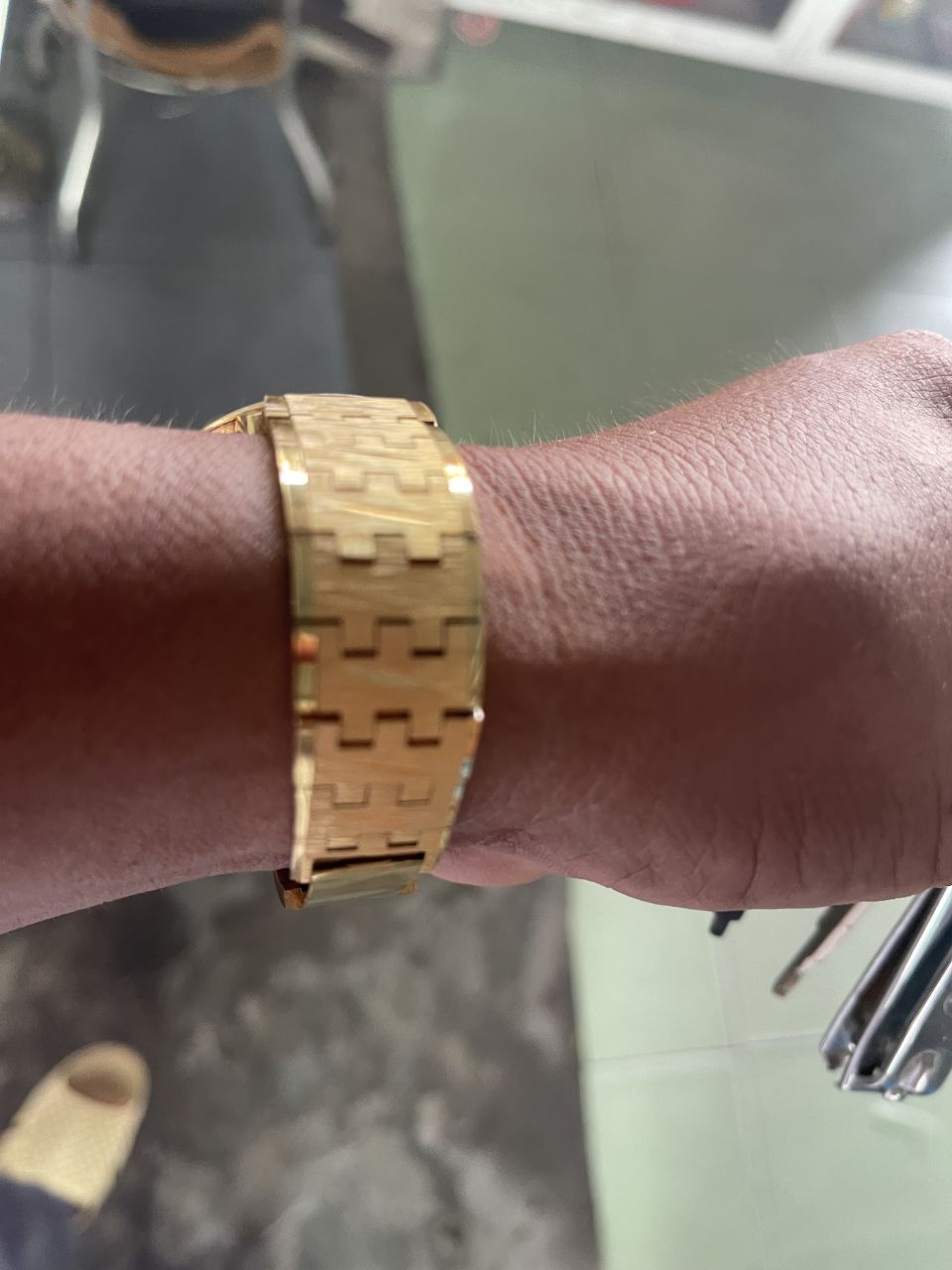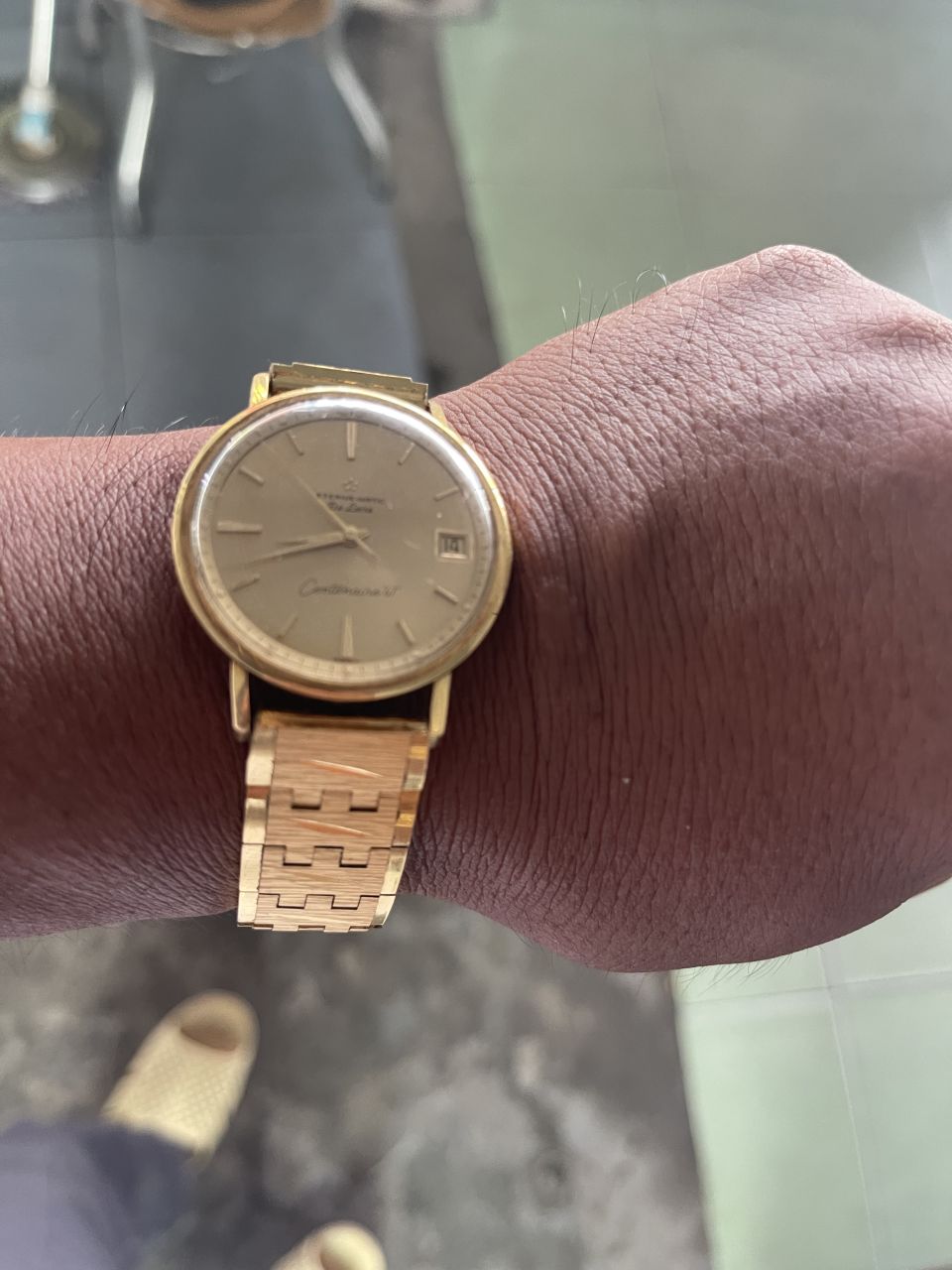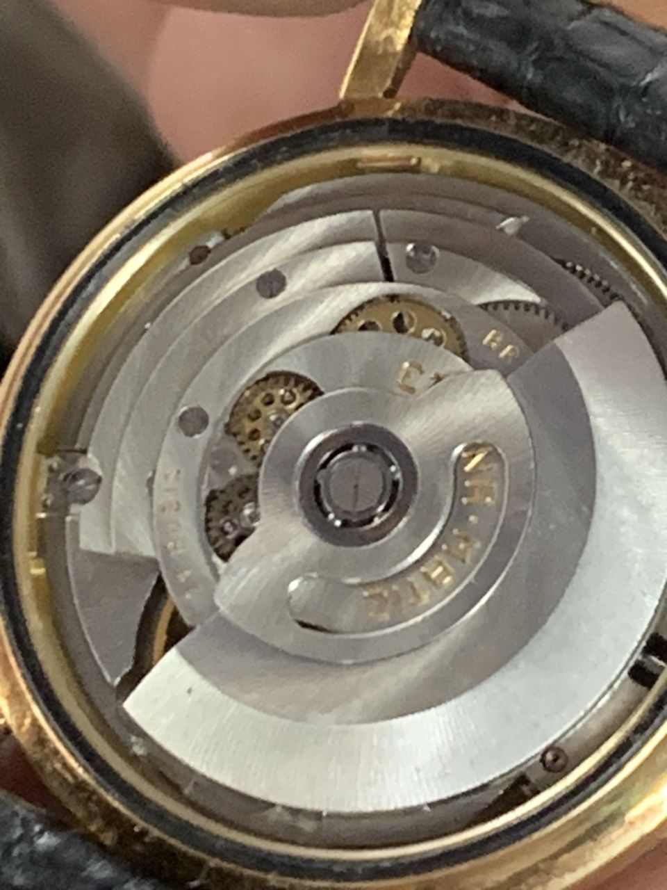 đồng hồ cổ vàng khối 18 k tự động có lịch thuỵ sỹ chạy tốt