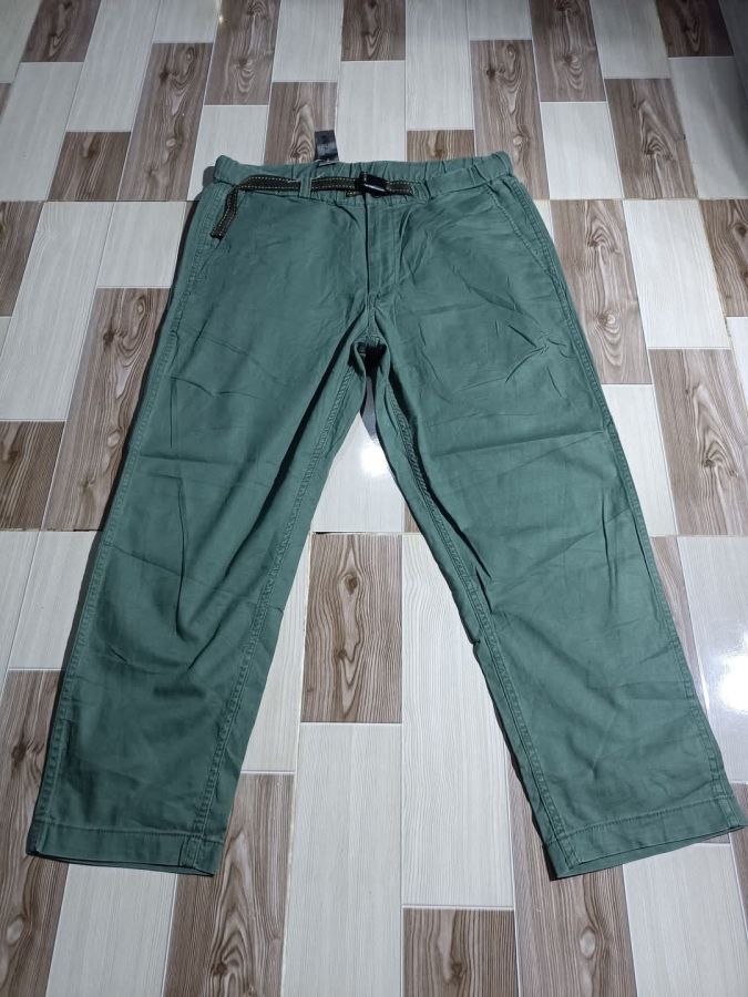Uniqlo Nhật màu rêu sĩ quan, cotton có pha thun co giãn vừa thoải mái vận động. Nịt dù xịn chất