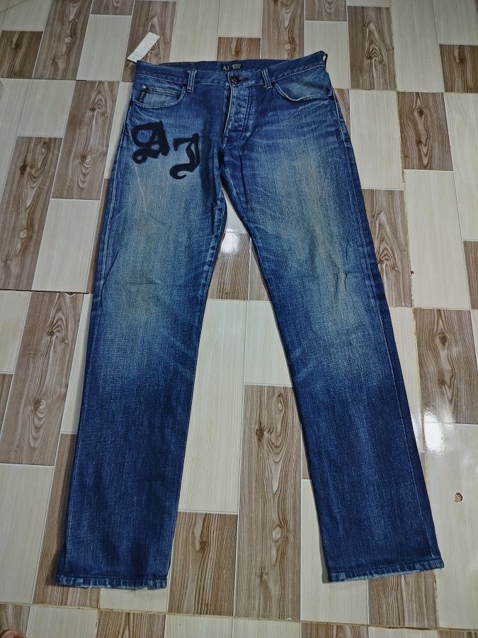 Jeans hãng Armani Mỹ xưa 💯 cotton dầy mềm bền chắc chắn 👍 Thêu logo tag da nút cài sài 5 phút quen sẽ khóai hơn khóa kéo kẹt chym . Nút cài sài quen mở bằng 1 tay 2 ngón móc là súng rồi 😅