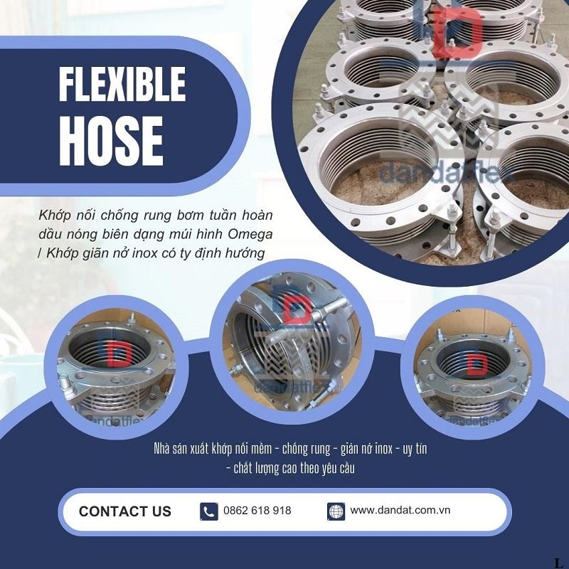 Công Ty Dân Đạt - Chuyên sản xuất các thiết bị lưu chất như : Khớp nối mềm (Flexible joint), Khớp giãn nở, Khớp co giãn, Bù trừ giãn nở (Expansion Joint), Ống mềm inox ( Flexible Metal Hose), Ống ruột gà lõi thép (ống luồn dây điện), Ống mềm nối đầu phun sprinkler (ống mềm chữa cháy), Dây dẫn nước inox, Ông chôn bê tông, Dây đồng bện tiếp địa (thiết bị điện công nghiệp), Đầu nối phụ kiện các loại,...