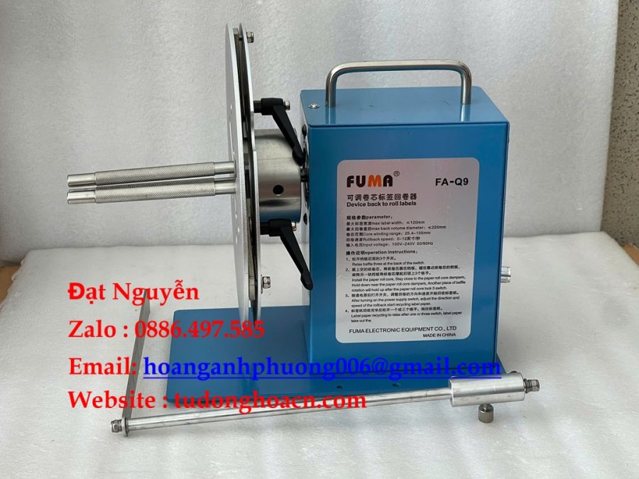 - FUMA FA-Q9 – Máy cuộn tem nhãn tự động với cấu trúc 3 càng, cho phép tương thích với nhiều đường kính lõi khác nhau, hỗ trợ khổ tem nhãn tối đa 120mm.
