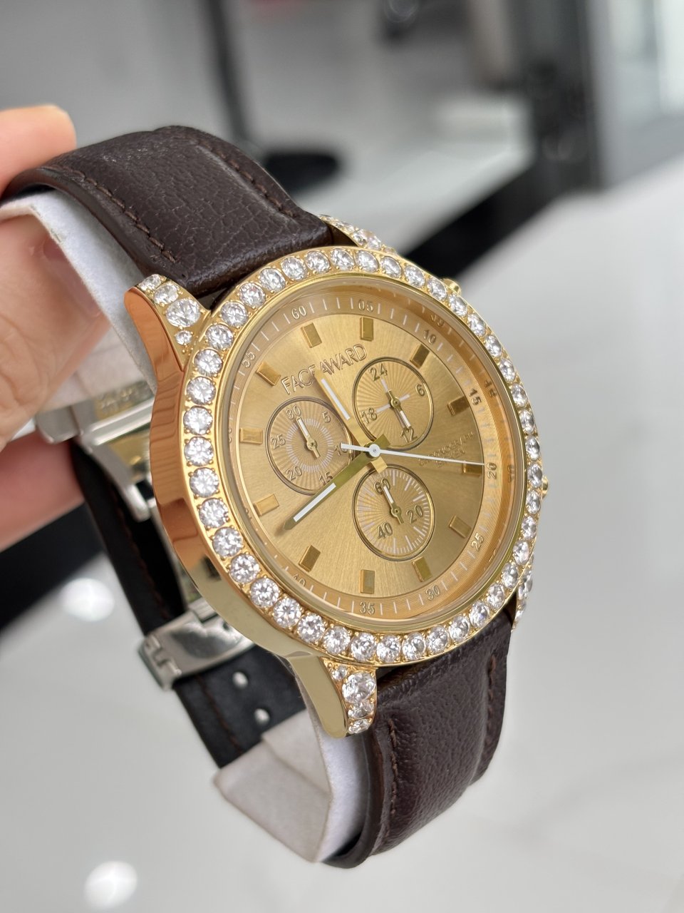 FACE AWARD nội địa NhậtĐính đá pha lê Swarovski Sáng lấp lánhSize 47mm dành cho các anh nam tay toKhoá bướm xịn sò mời Vip sở hữu ❤️1,9 triệu