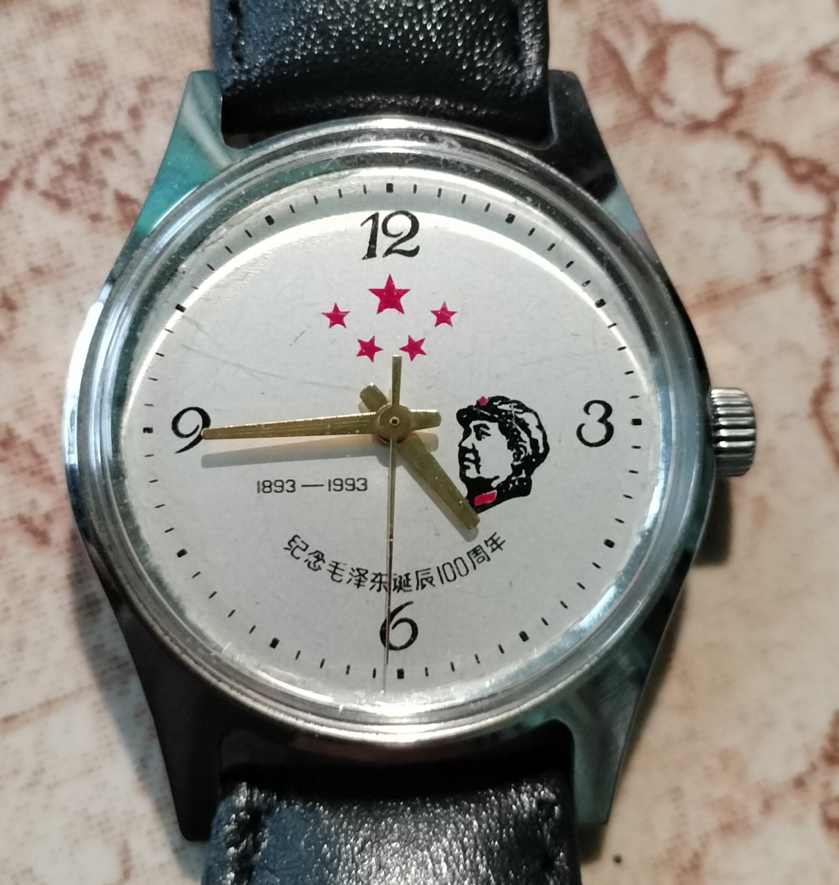 Đồng hồ Fangzhen trung Quốc xưa phiên bản kỷ niệm 100 năm ngày sinh chủ tịch mao Trạch Đông dây da vỏ inox máy lên giây chạy chuẩn giờ size 36cm đồng hồ còn rất mới