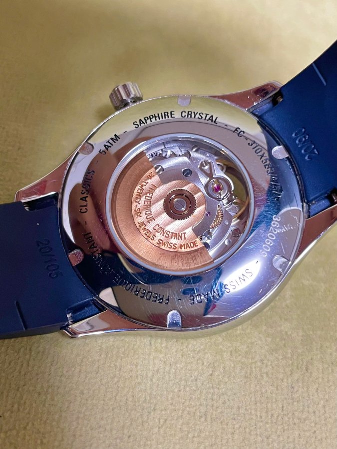 FC-310MNS5B6- Size 40mm , dây cao su khoá gập thông minh. kính sapphire phủ ar chống loá- Tình trạng: qua sd còn rất đẹp, full box