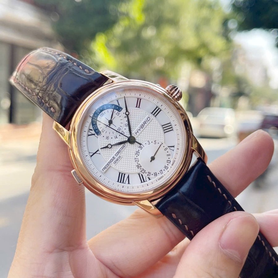 FC HYBRID Automatic kết nối Bluetooth với điện thoại FC-750MC4H4* Tình trạng: Lướt đẹp full box* Thân vỏ: Thép 316L bọc vàng 18k GP10* Size mặt: 42mm* Chống nước: 50M
