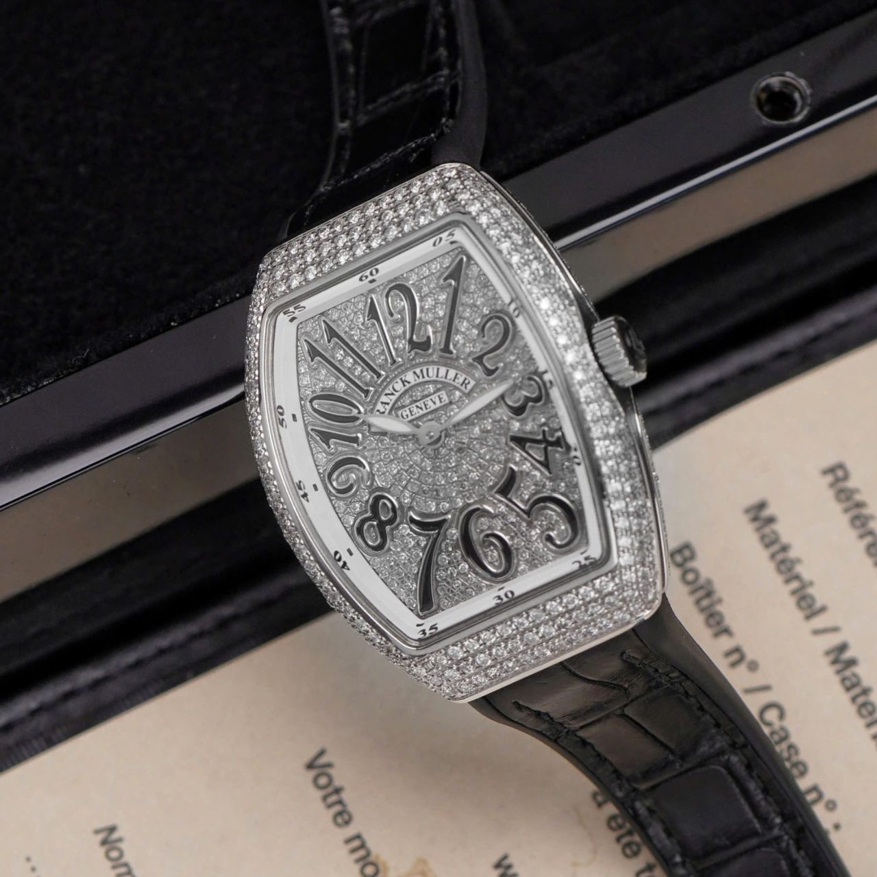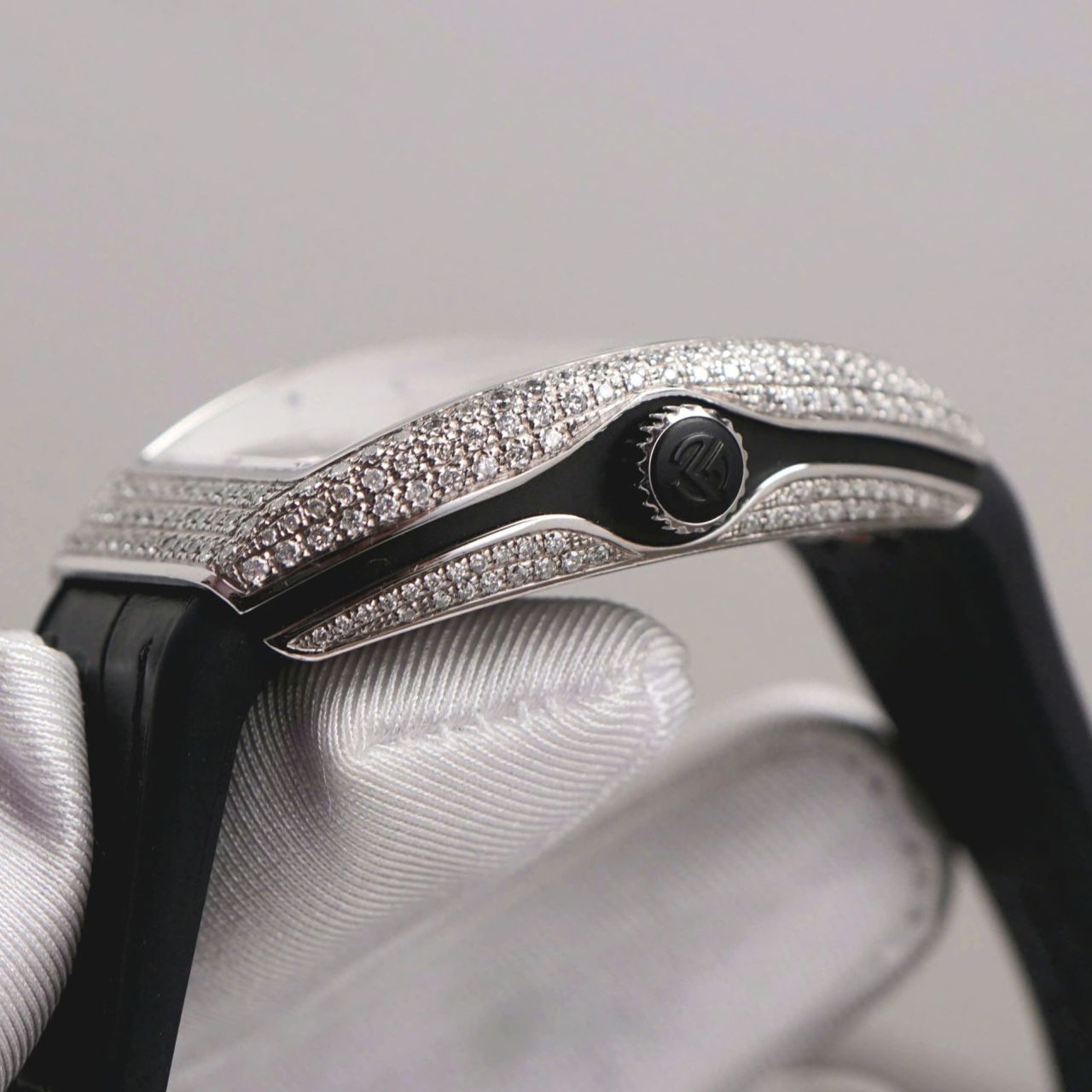 - Chất liệu Vỏ: bằng thép không gỉ nạm full kim cương tự nhiên.