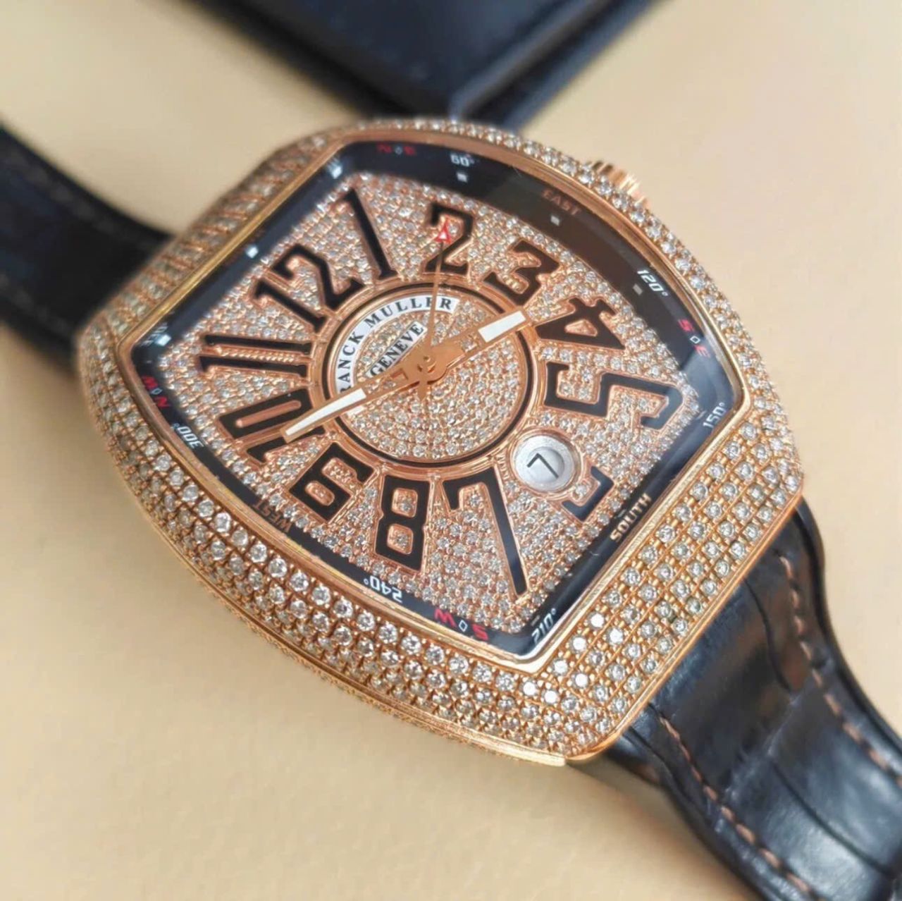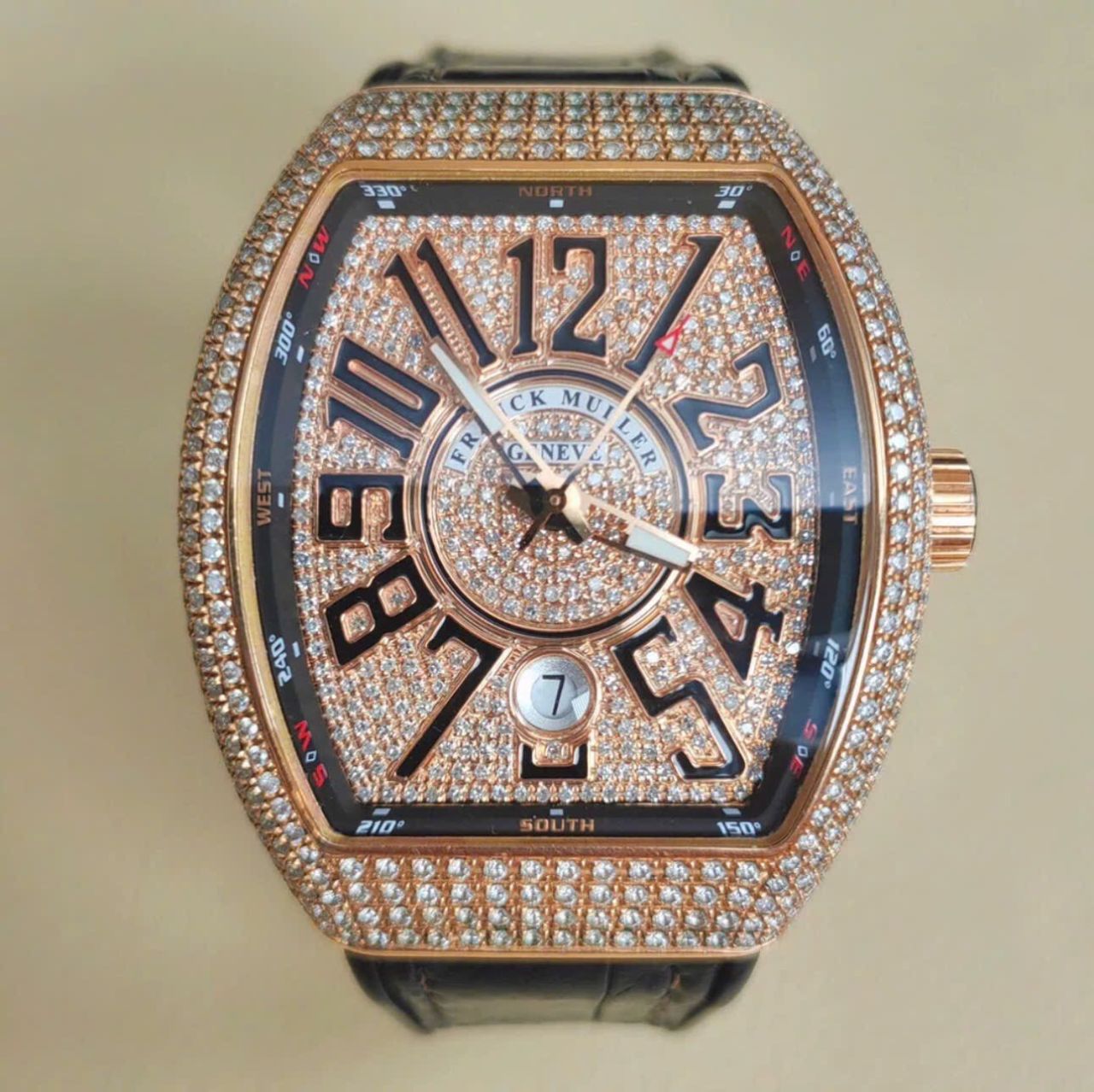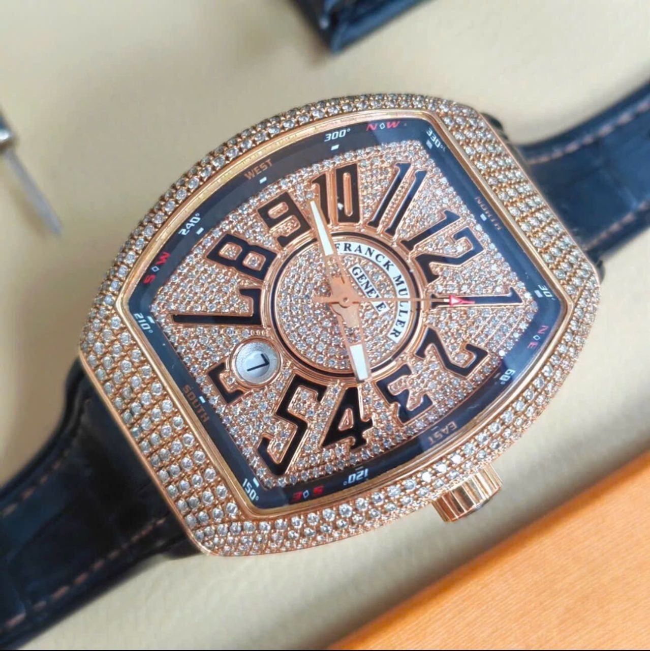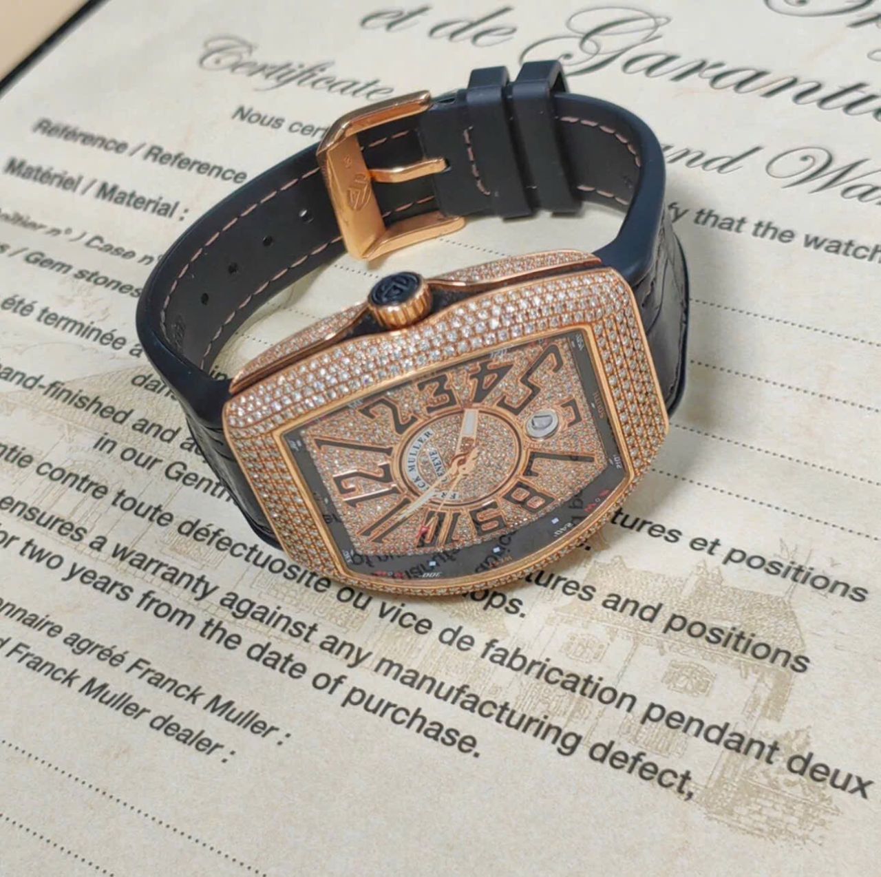 Franck Muller Vanguard V41, Custom full Diamonds Black Dial, Vàng hồng đúc 18k, Size 41mm, Like new fullbox, Giao lưu 220 triệu (Retail: 625 triệu) ah