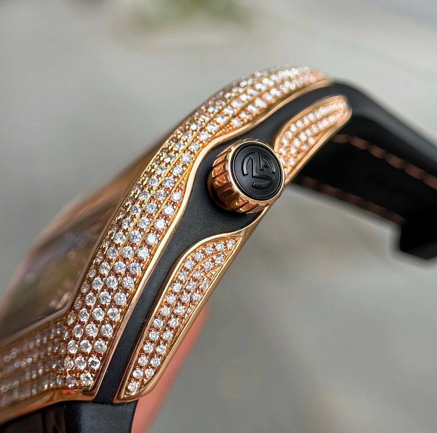 • Vỏ vàng khối 18K, độ full kim cương pave lấp lánh
