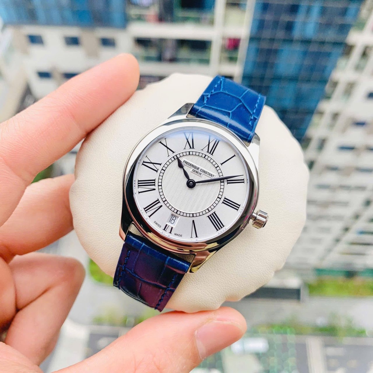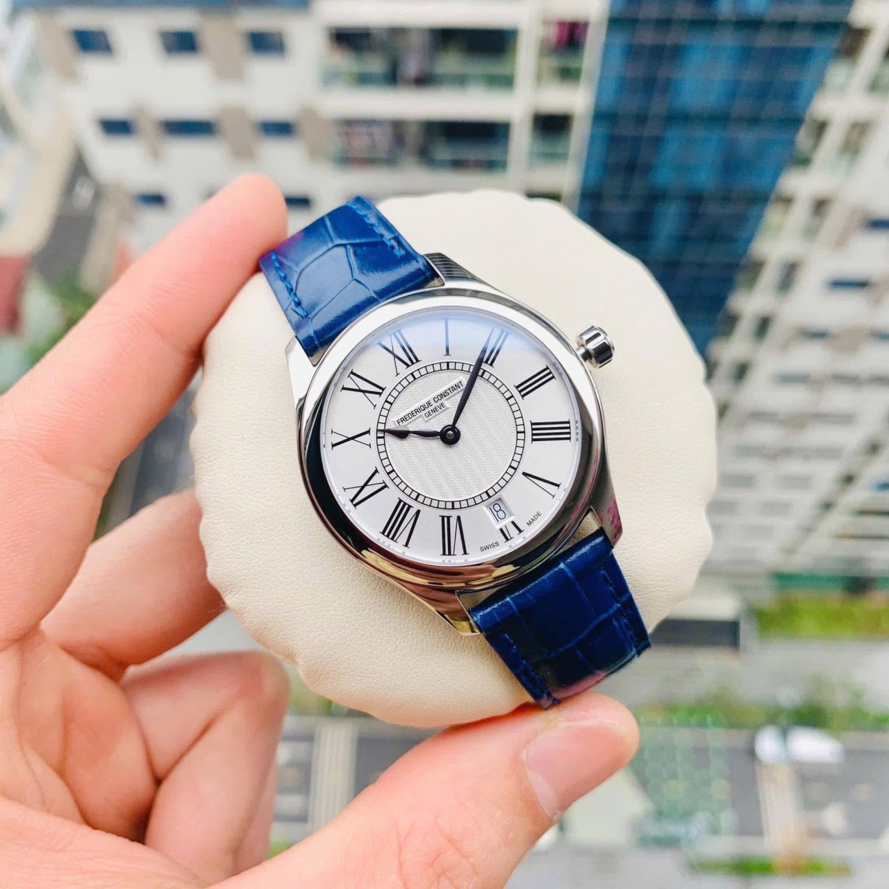 Mặt dial trắng tinh khôi kết hợp cùng bộ dây da xanh trẻ trung bắt mắt