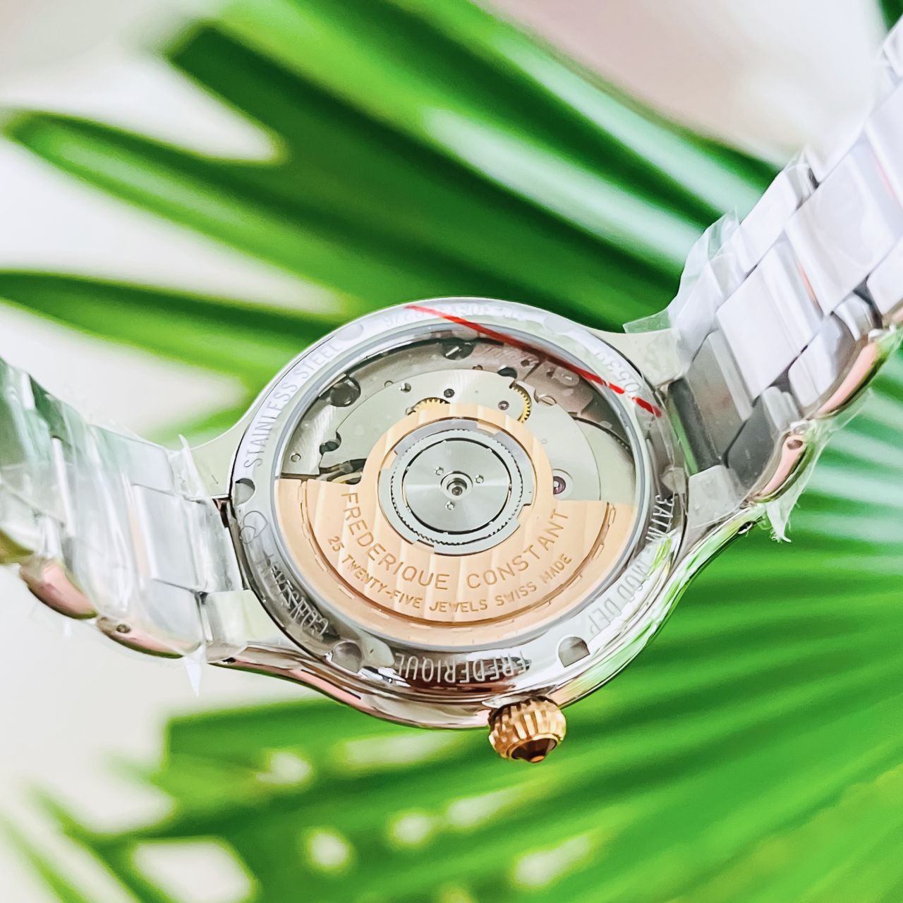 - Chất liệu vỏ, dây: Thép không rỉ mạ vàng hồng