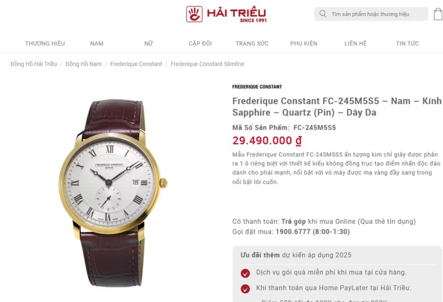 - Máy : Quartz pin Thụy Sỹ bền bỉ chính xác