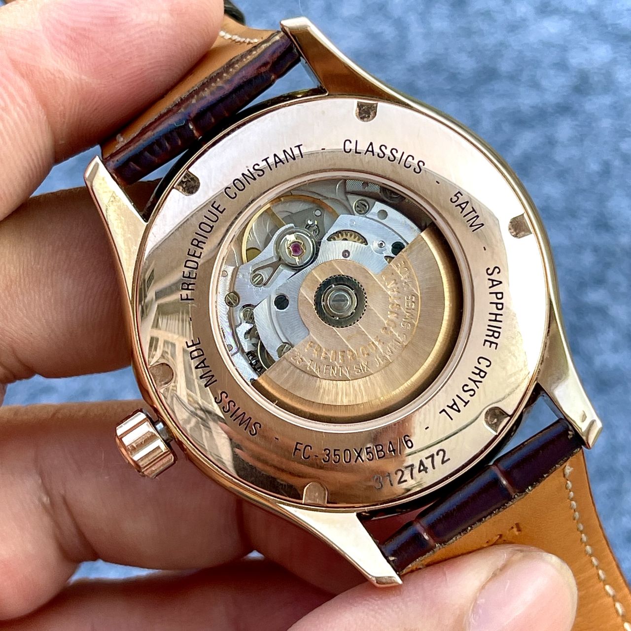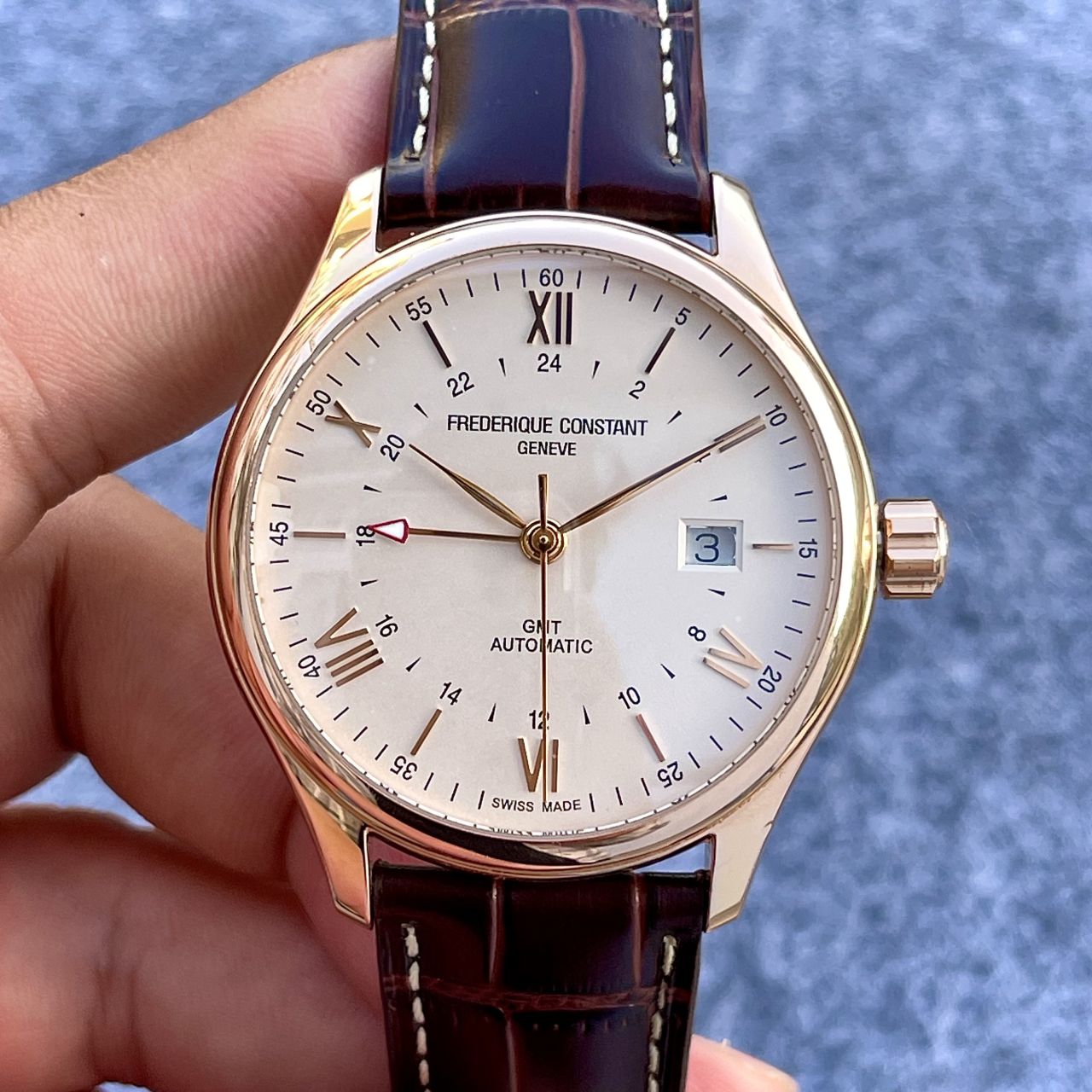 Fc-350 GMT Vàng Hồng Cực ĐẹpHàng Hiếm trên thị trường.Kính Saphire Nguyên Khối chống trầy 2 mặt.Size 42mm, Mỏng 10.5mm.Máy Auto Swiss Fc350 Giá new hãng cao gần 50 triệu.