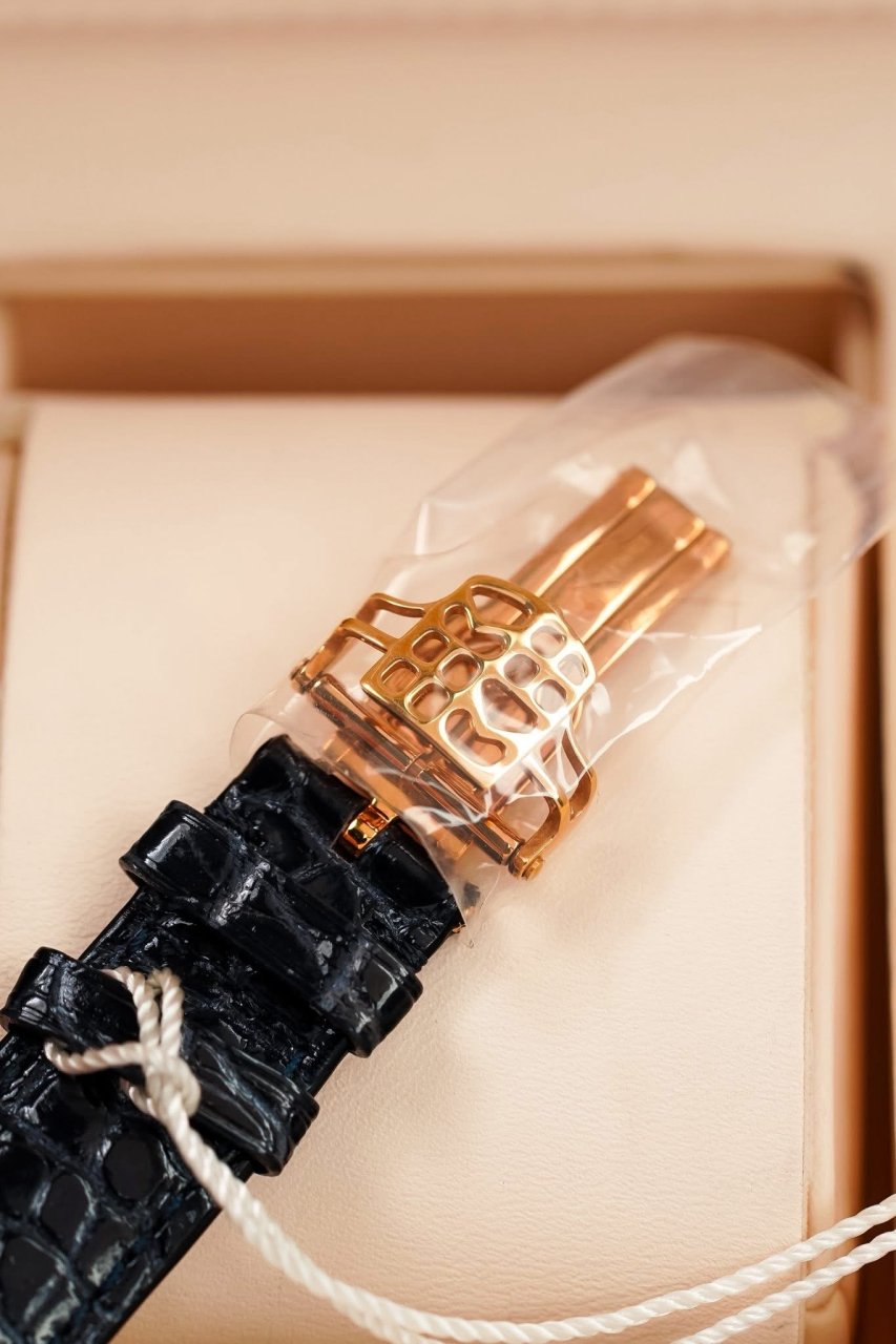 - Viền mạ vàng hồng 18k được làm nổi bật bởi nền trời đêm xanh thăm thẳm cùng với cọc kim sáng lấp lánh