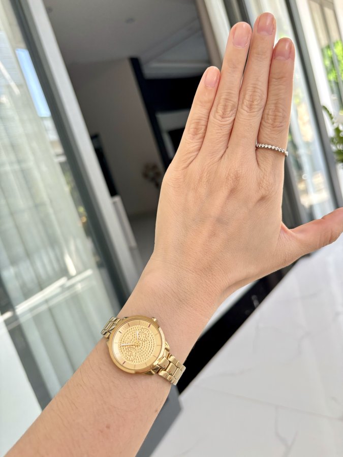 - Tone vàng gold lên tay nổi bật